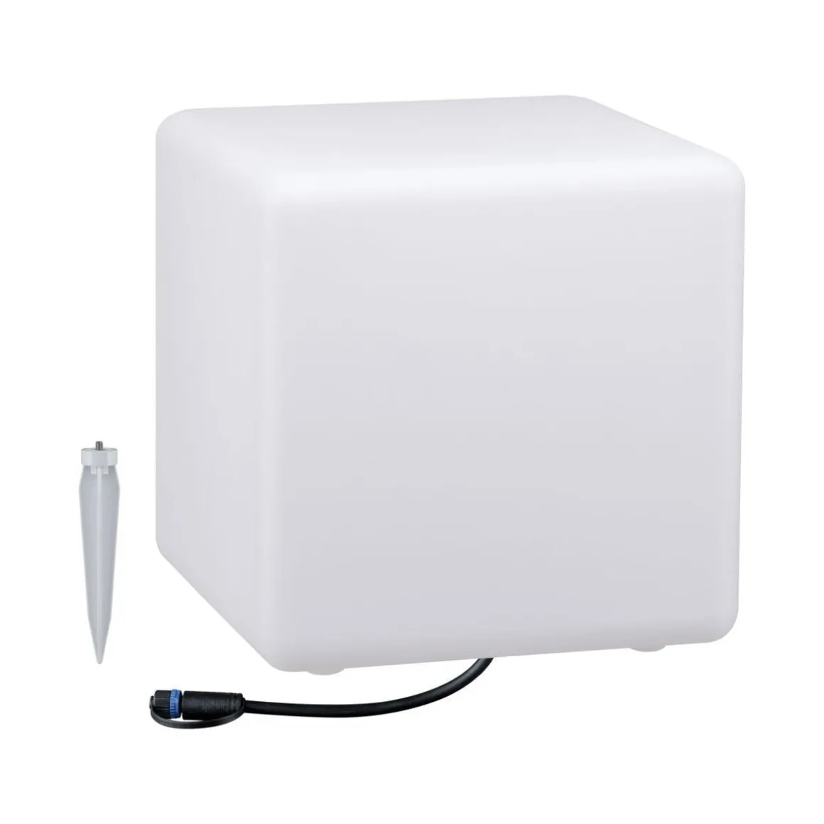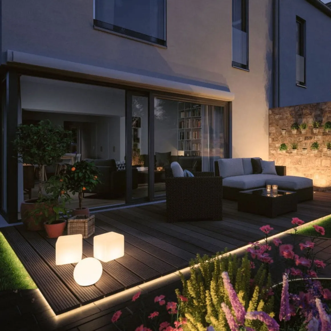 Cube Plug & Shine opplyste kuben med en kantlengde på 30 centimeter er et dekorativt blikkfang i blomsterbed, på terrassen eller på balkongen. Med transformatorer, kontakter og tilleggsarmaturer fra Plug & Shine-serien kan du sette sammen en individuell belysningsinstallasjon for uterommene dine.