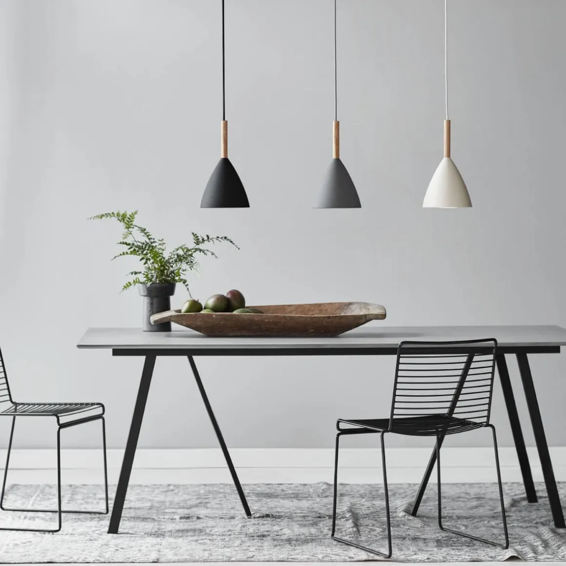 Pure-lampeserien består av vegglampe, bordlampe, gulvlamper og to ulike størrelser på pendelene.