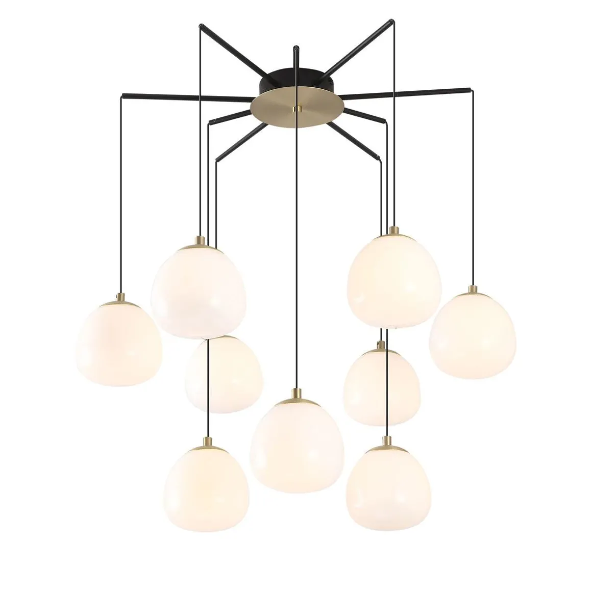 Raindrop taklampen tilfører en unik eleganse og et vakkert lysspill til ethvert rom. De ni runde glasskulene reflekterer lyset jevnt og skaper myke skygger og en behagelig atmosfære.