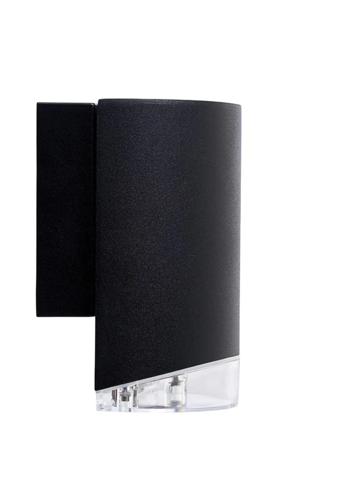 Ribe ned utevegglampe i matt sort, er en funksjonell lampe som til tross for størrelsen skaper god utebelysning som går nedover. Glasset er integrert i lampens design, noe som skaper et eksklusivt uttrykk. Lampen er formet som en sylinder i matt sort aluminium/frostet PVC