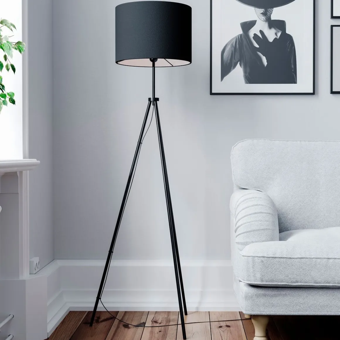 Rina er en stilren gulvlampe som står på tre bein. Skjermen i bomull fås i to farger, svart eller hvit. Lampen kan plasseres både i soverom og hverdagsrom hvor du behøver et dekorativt lyspunkt som lyser opp. Denne gulvlampen har et klassisk design og passer godt i alle hjem. Til denne lampen benyttes 1 lyskilde med E27 sokkel, ikke glem å legge lyskilden i varekurven din.