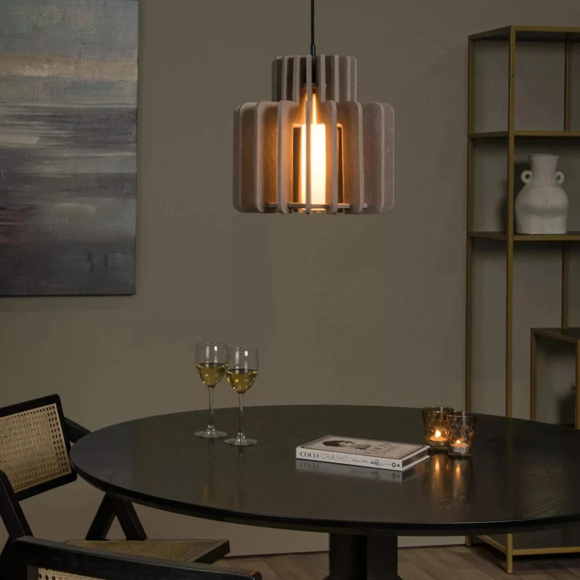 Name it, Rollo har det. Denne pendellampen har et naturlig, men dristig utseende, noe som gjør den perfekt for skandinavisk eller minimalistisk interiør. Rollo er laget av høykvalitetsfilt laget av resirkulerte materialer, og har en sylindrisk frostet glassskjerm. Du kan enkelt justere høyden på lysekronen under installasjonen eller koble den til en dimmer for enda mer atmosfære. Filten gir ikke bare et stilig preg, men forbedrer også akustikken i hjemmet ditt. Med Rollo er stemningen alltid rett.