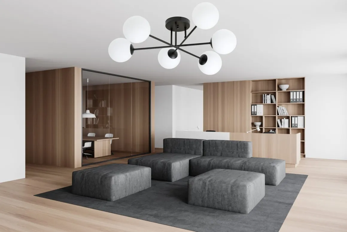 Roma er en moderne og stilfull taklampe serie, som finne med opal hvit eller røykfarget glasskuppel.
