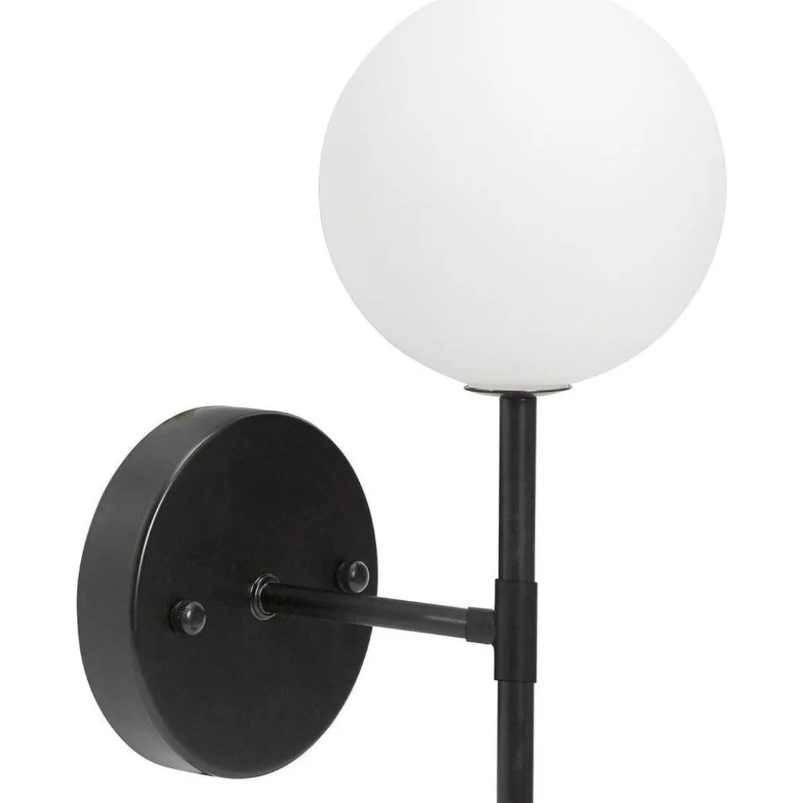 Vegglampe i minimalistisk design med opalglass og metallramme i matt sort. Den er fuktsikker i IP23-klassifisering og passer godt i baderomsmiljøer. Siden glassskjermen er håndlaget kan det av og til være luftbobler i glasset samt en viss ujevnhet i glasstykkelsen over glassflaten. Vær oppmerksom på at denne armaturen er for fast installasjon og at den ikke leveres med separat kobling og tilkoblingskabel.