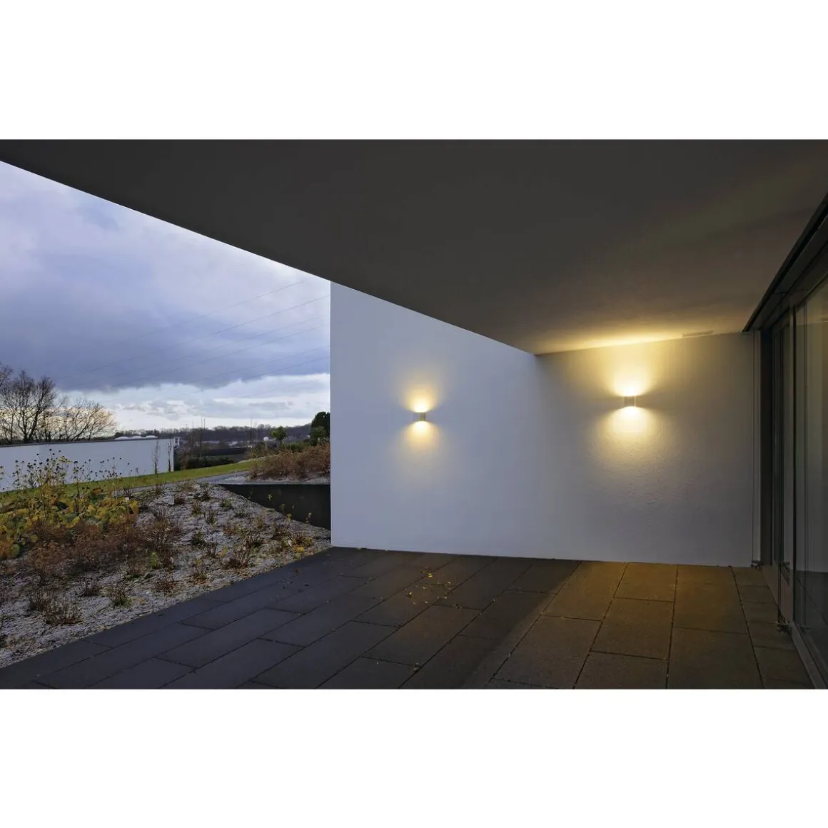 Kubisk veggarmatur SITRA CUBE i lakkert aluminium. De to integrerte soklene er plassert slik at armaturet utstråler to like lyskjegler i to forskjellige retninger (UP/DOWN). Med kapslingsklasse IP44 er den egnet til utendørs bruk. armaturet finnes i flere farger. Den kobles til elektriske anlegg med 230 V nettspenning.