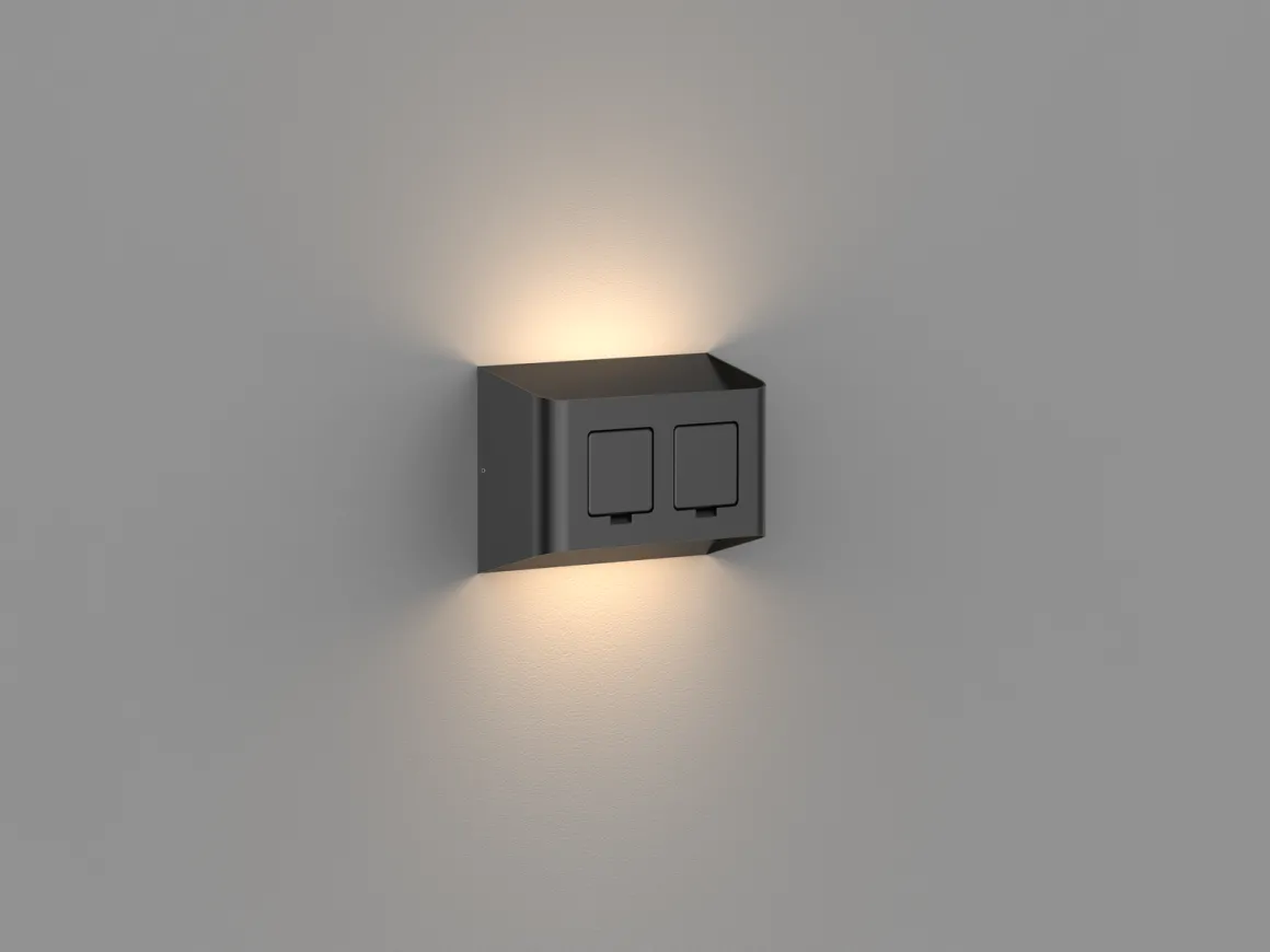 Denne veggarmaturen er spesielt utviklet til å møte kravet fra prosjektmarkedet. Armaturen er i samme stil og kvalitet som resten av SØGNE-serien, men har nå fått to stikkontakter med klapplokk i front (IP44). Lysretning (opp/ned / opp+ned) kan velges med en bryter inni armaturen og lyskilden er dimbar. Montasjevennlig både for åpen og skjult installasjon.