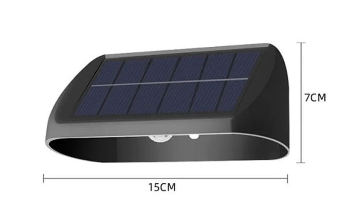 Oppladbar vegglampe med solcelle. Skruer seg automatisk på når det blir mørkt og automatisk av når det blir lyst. Lader i dagslys. Velg mellom to lysstyrker. Lyskilden gir et bredt lysbilde, hvor den lyser tydelig opp veggen og gir et kjegleformet lysbilde. Monteres enkelt til underlaget, med to festekroker som hektes over skruehodet.