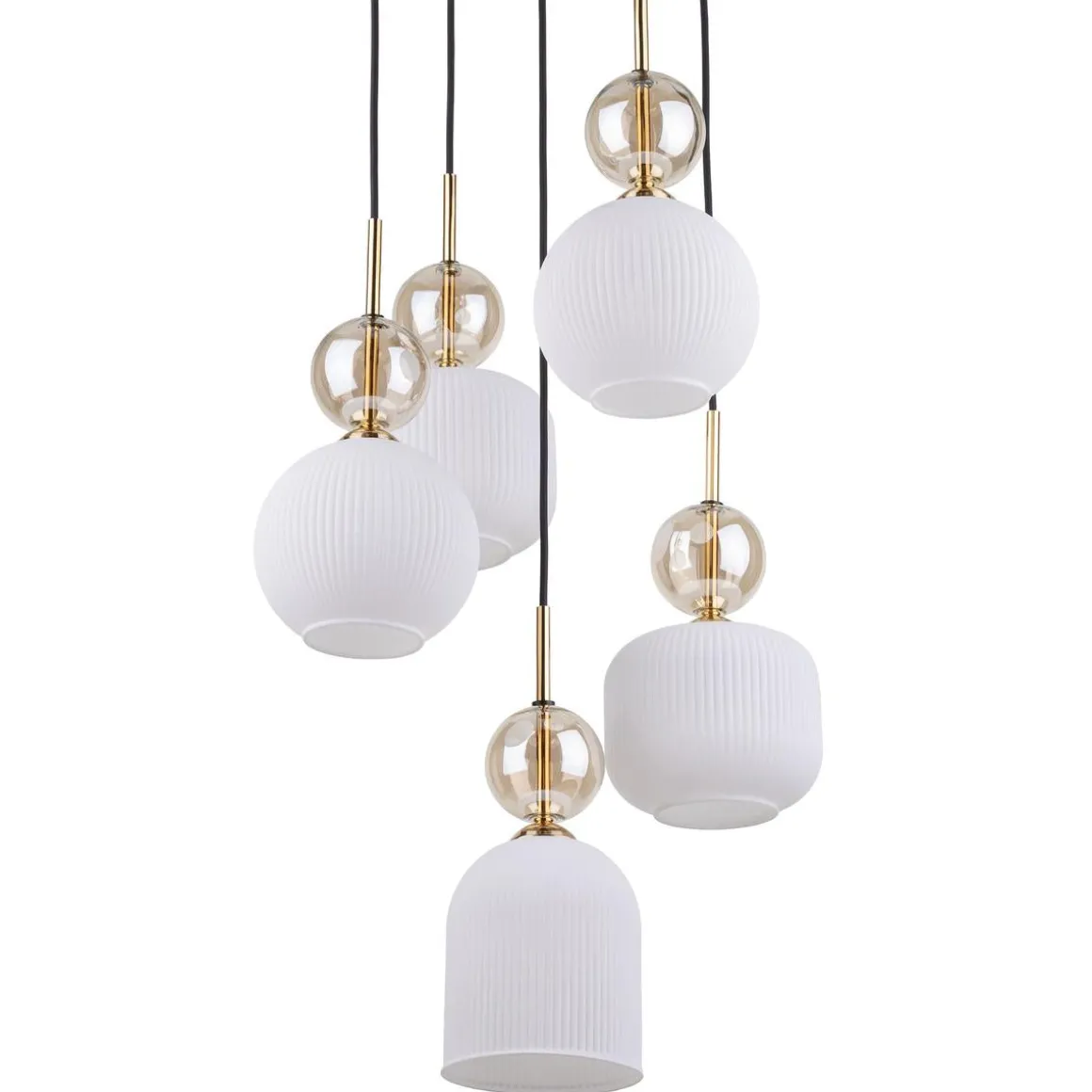 Sophia lampefamilien kombinerer klassisk form med en moderne karakter. Særegne skjermer med delikate, vertikale riller i en varm fargetone diffunderer lyset diskret og skaper en koselig atmosfære i rommet. Stilige gulldetaljer og elementer i røykfargede glasstoner gir eleganse og raffinement til det overordnede designet. Kolleksjonen inkluderer ulike varianter – fra enkle pendler, via taklamper med til vegglamper – som lar deg harmonisk belyse både små og romslige interiører. Sophia er perfekt for stuer, spisestuer, soverom og til og med kommersielle rom, og gir dem en unik karakter.