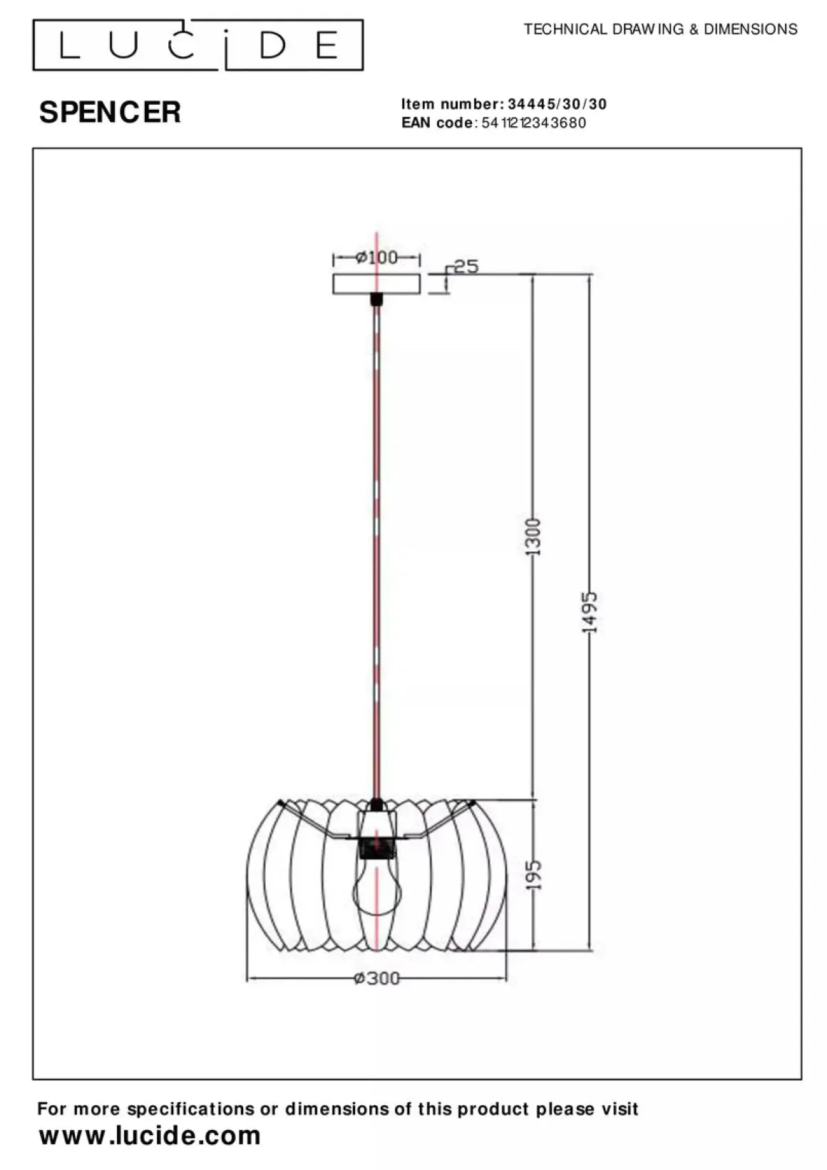 - Lengde ledning: 130 cm fra takfeste og ned til skjerm