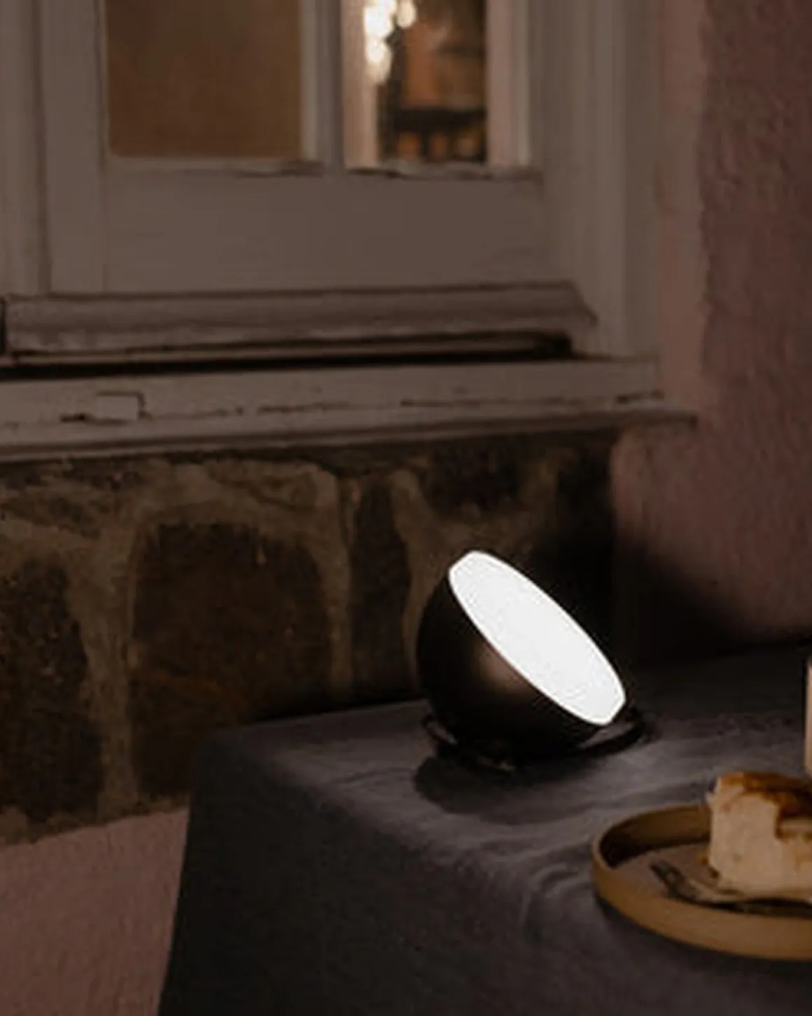 Flytt kulen rundt i hjemmet etter behov og ta den med ut på balkongen, terrassen eller på utflukter til skogen, stranden eller parken. Denne forlokkende lampen er ideell for utendørs sammenkomster som varer utover skumringen.