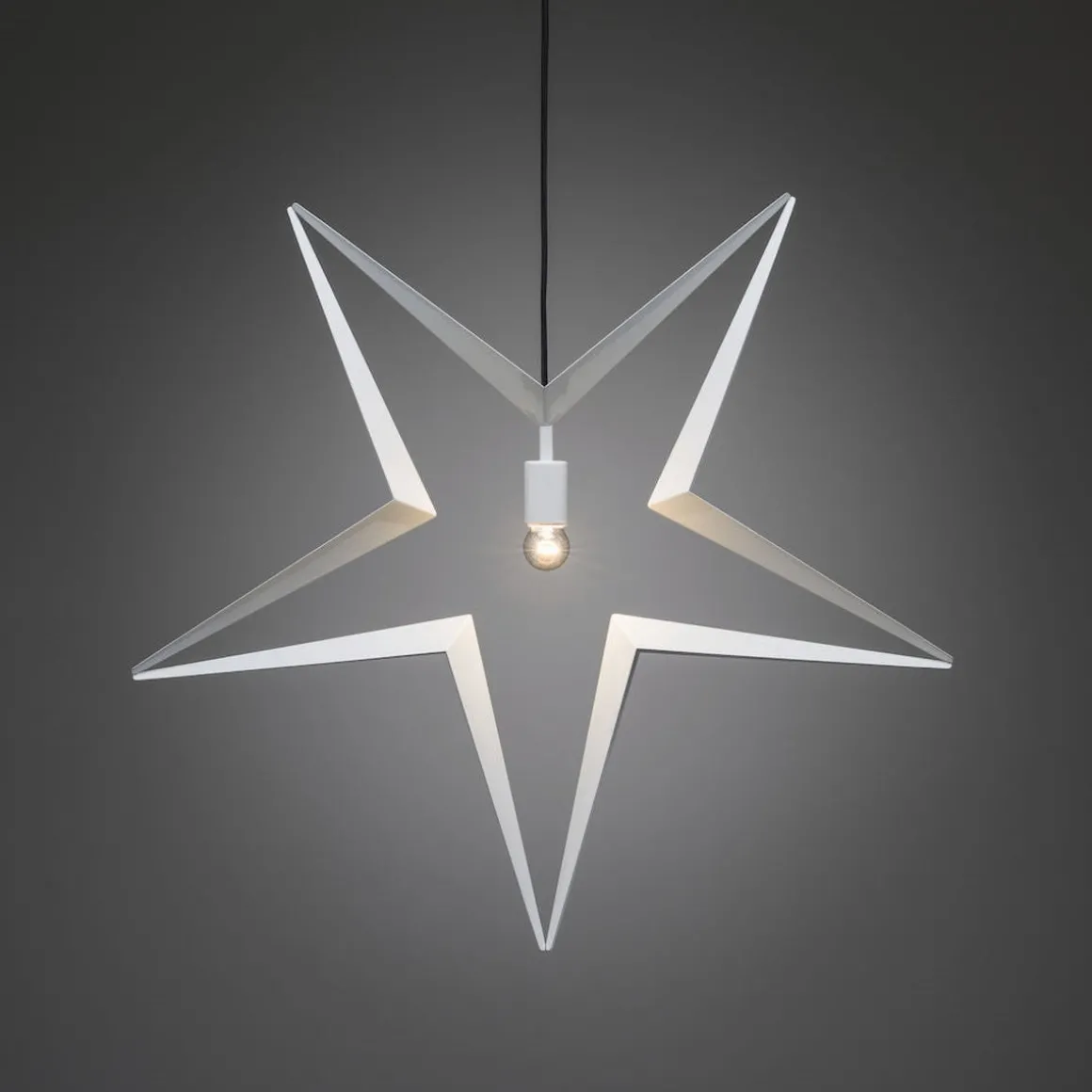 Stor og flott metallstjerne med mørk grå tekstilledning. Du behøver en LED-lyspære med E27-sokkel til stjernen.