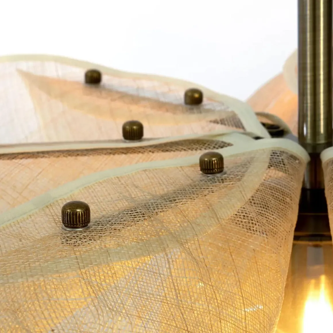Hvert blomsterblad monteres for seg med to antikkfargede muttere, som utgjør en gjennomtenkt designdetalj. Materialet på bladene er både skjært og stabilt, med en linaktig struktur.