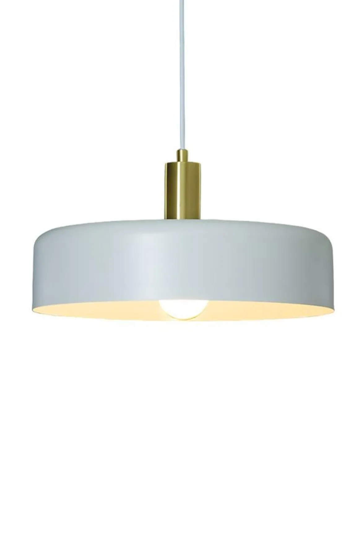 Suvi er en moderne og stilig taklampe som passer godt i de fleste hjem. I stilrent design med skjerm i hvitlakkert metall og detaljer i matt messing. Suvi gir godt nedoverrettet lys som passer perfekt for å lyse opp en bordflate eller benkeplate.