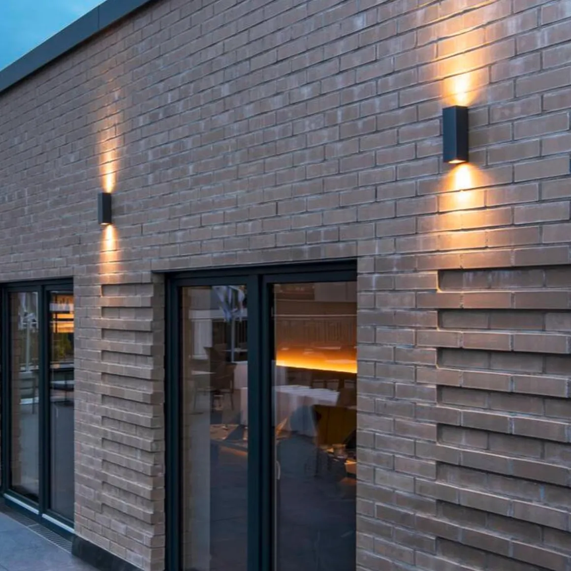 Veggarmatur fra THEO serien er laget av aluminium og glass som dekker lyskilden. Takket være posisjonen til de to integrert fatningene, lager den monterte armaturet to lyskjegler i motstående retning (UP/DOWN). Kapslingsklassen IP44 gjør armaturet egnet for utendørs bruk. Den elektriske tilkoblingen skjer direkte til 230 V nettspenning.