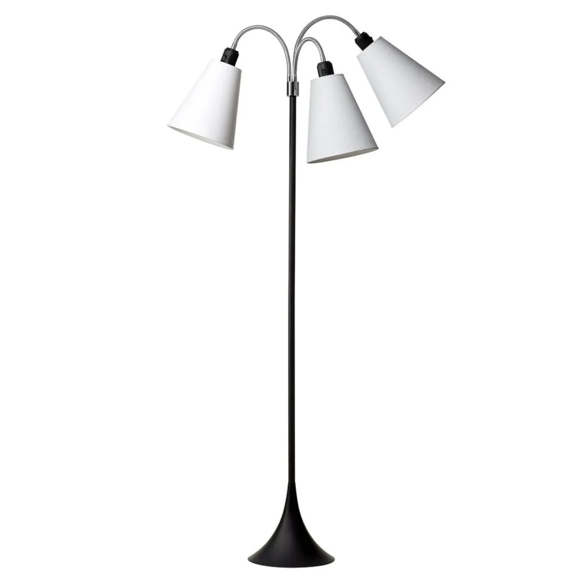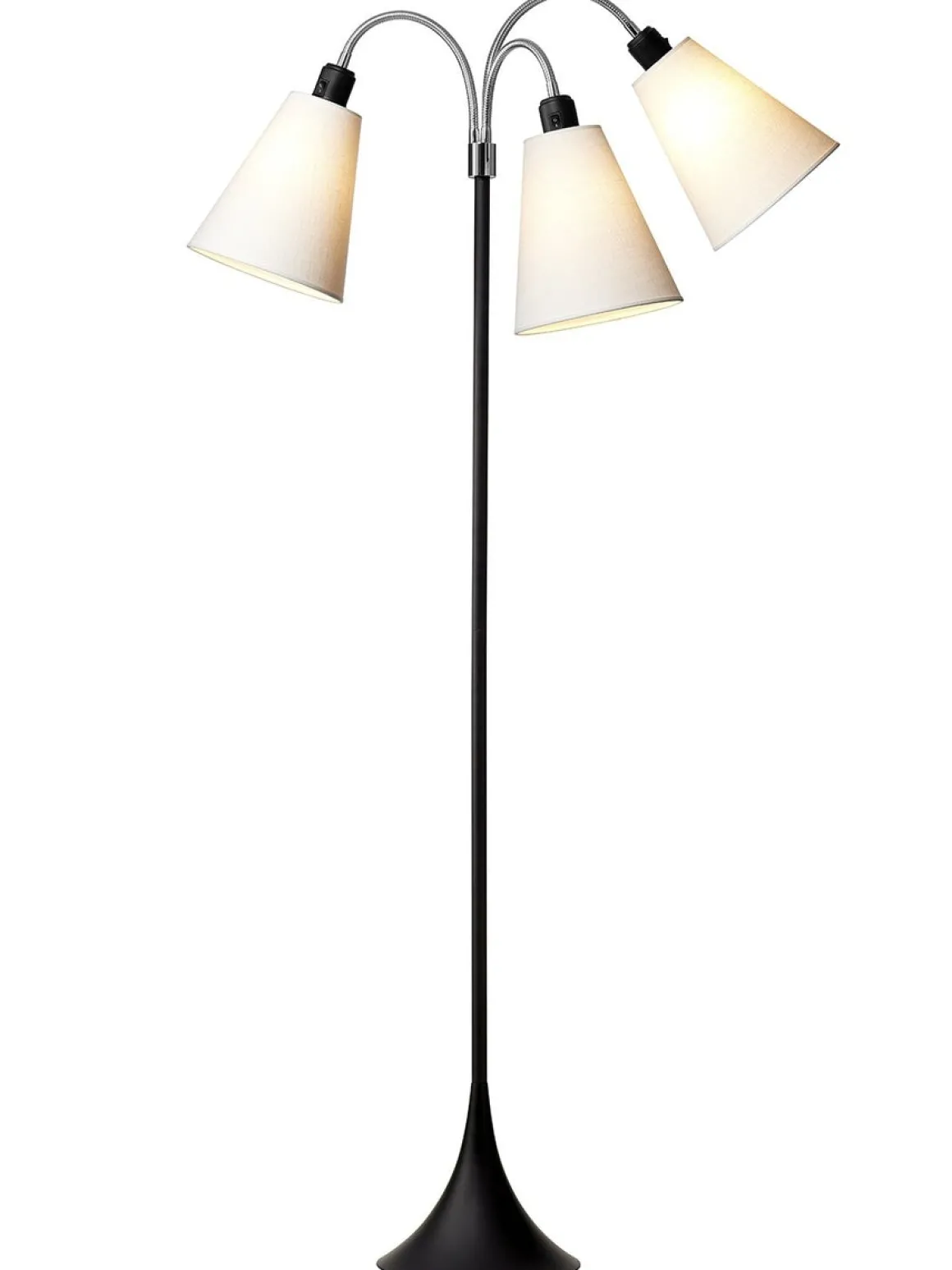 Klassisk gulvlampe med 3 skjermer og er fleksibel slik at du kan justere lampehodene.