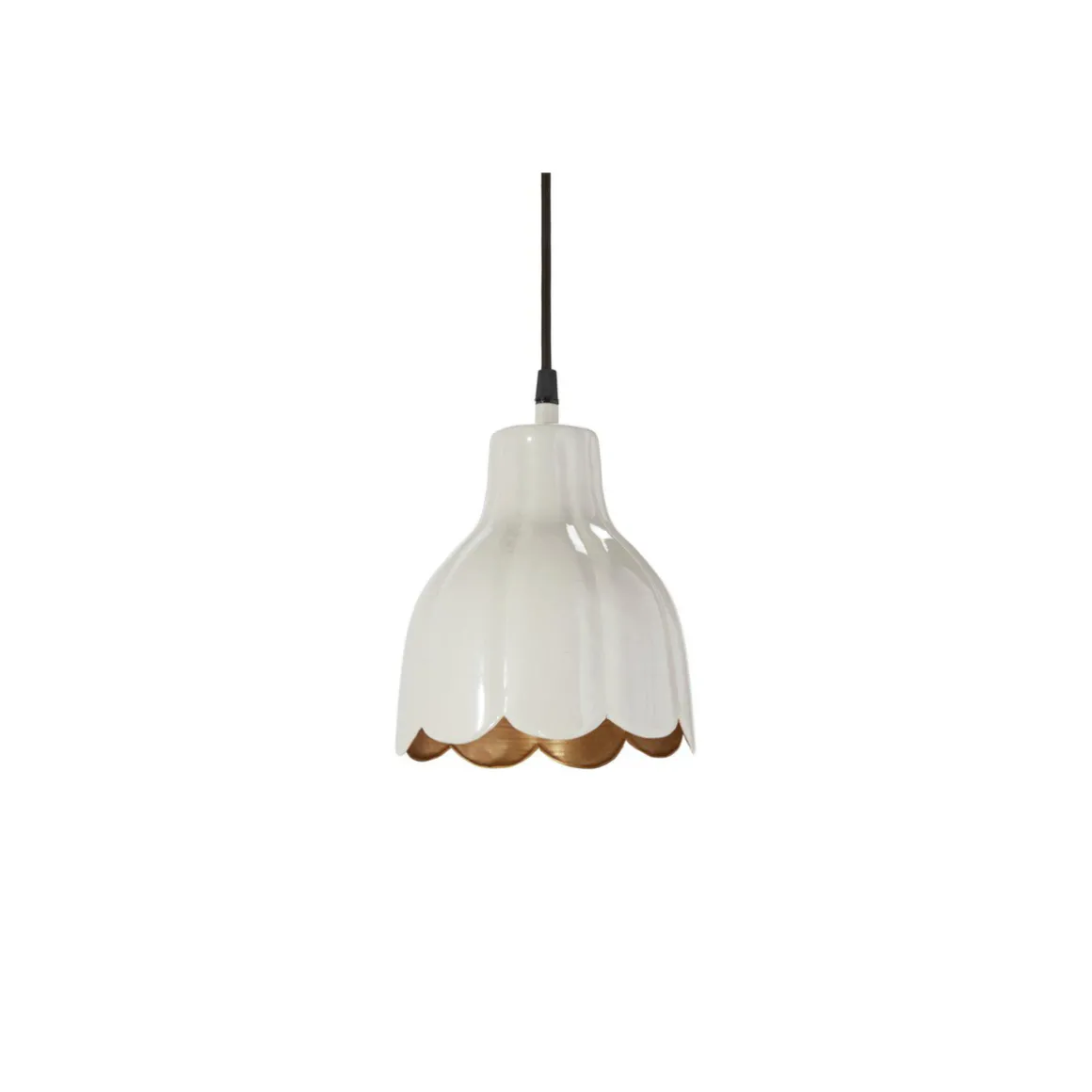 Lys beige eksteriør med gyllent interiør som sprer en varm, deilig glød. Hver lampe er laget for hånd.