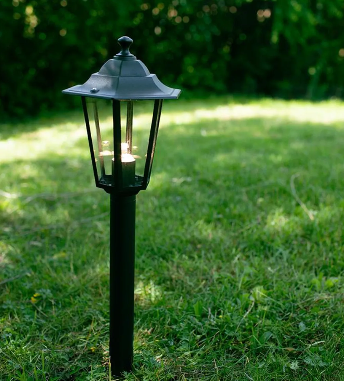 Hagelys i svart aluminium og klart glass. IP44 godkjent for utendørsbruk. 30 cm in- og utgående kabel i pvc, for mulighet for vidarekopple. Markspyd medfølger. Transformator selger separat.