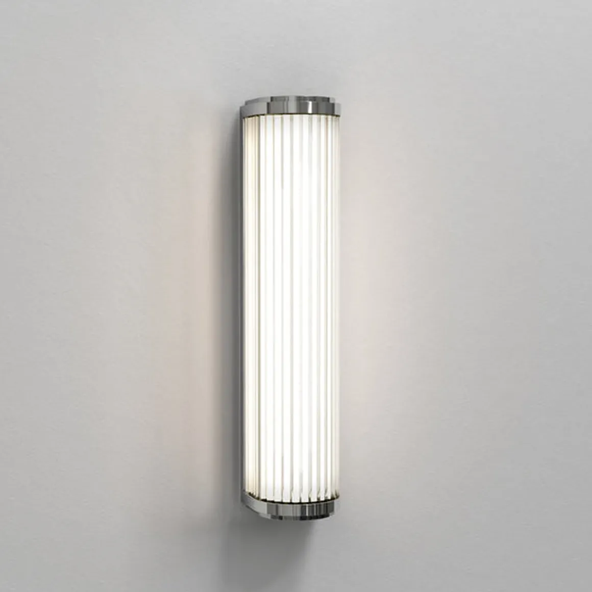 Vegglampen Versailles 370 er inspirert av klassiske design fra 1930 -tallet. Den er først og fremst beregnet for bad, men den strømlinjeformede designen utfyller ethvert rom. Laget av individuelle glass-stenger med bronse ende hetter, gir den funksjonell, blendingsfri oppgavebelysning som utstråler vintage-glamour.
