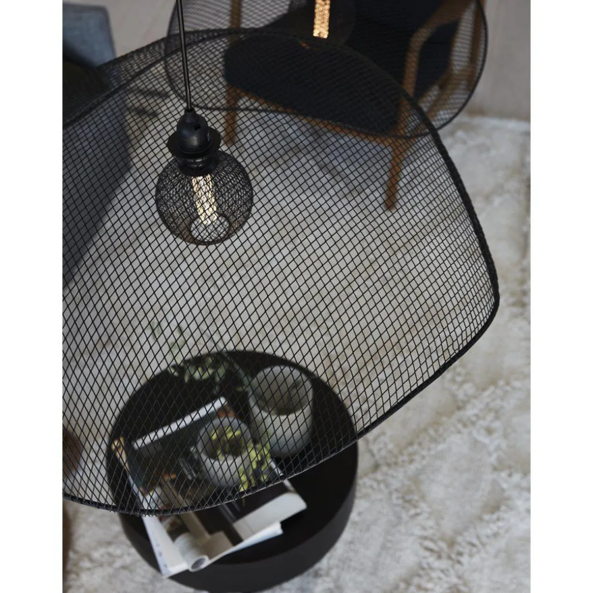 Takpendelen Vivi er en bredskygget og bølgeformet takpendel laget av svart metallgitter.