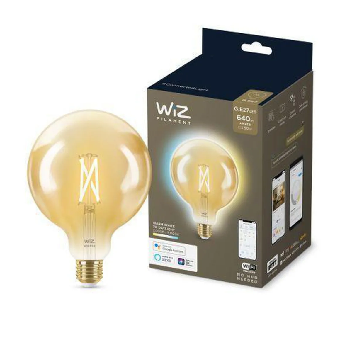 Bring menneskesentrert belysning inn i livet ditt med denne smarte WiZ LED G125 vintage kuppelformede lyspæren. Ravfargebelagt, klassisk utseende – Perfekt for dekorative armaturer. Velg mellom forskjellige nyanser fra varmt til kjølig hvitt for å få den beste stemningen. Du kan lage en tidsplan som skrur lysene av og på i henhold til dine daglige eller ukentlige rutiner, styre det med smarttelefonen eller stemmen din og ha fjerntilgang til lysene dine selv når du ikke er hjemme. WiZ-lys kobler til ditt eksisterende Wi-Fi og det kreves ingen annen maskinvare.