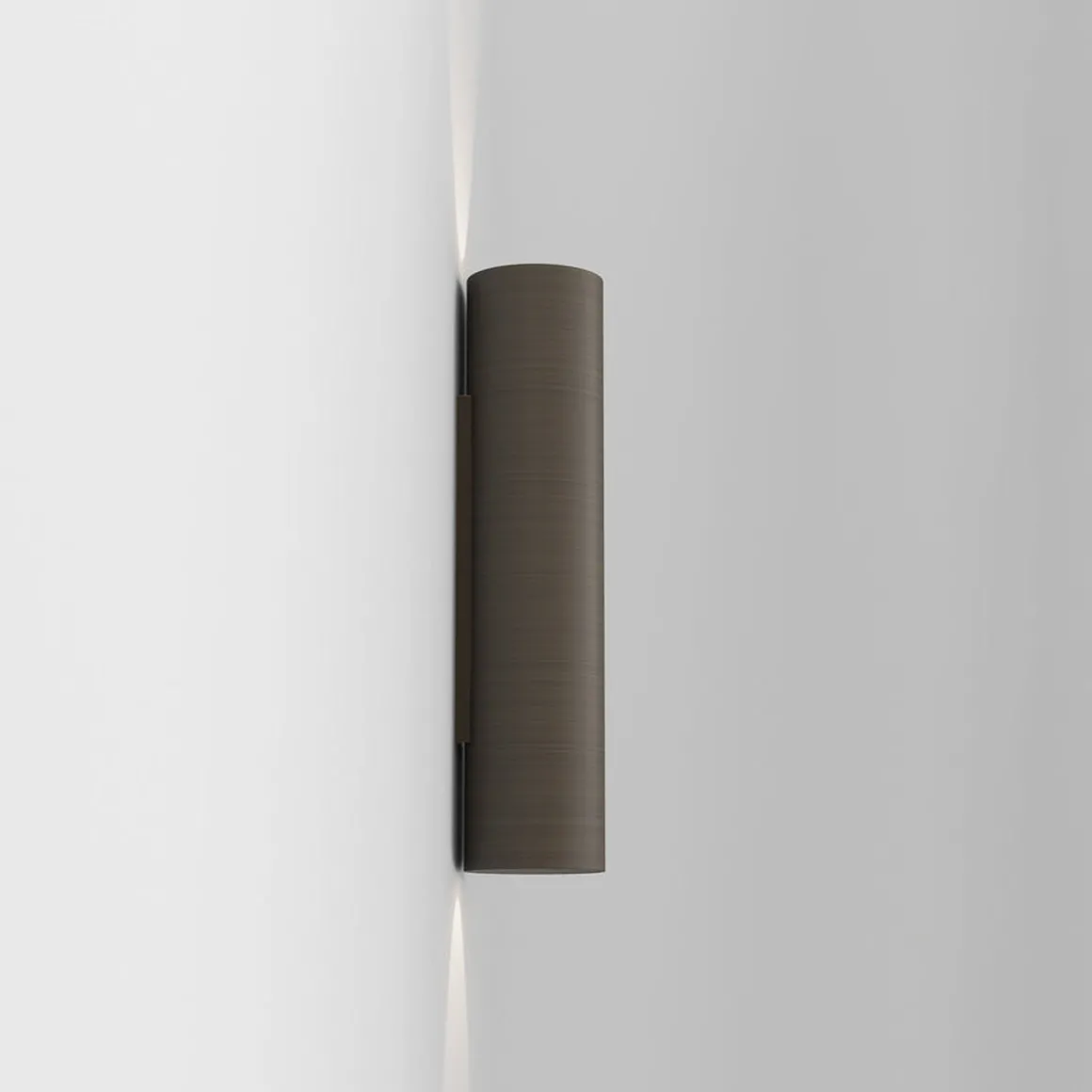 Vegglampen Yuma 300 er en moderne fasettert form inspirert av nyklassisk arkitektur. Den vasker definerte lysboller oppover og nedover, og kaster komplekse skygger som gjenspeiler formen. Den kommer i svart, bronse eller hvit og har ingen synlige fester for et sømløst utseende.