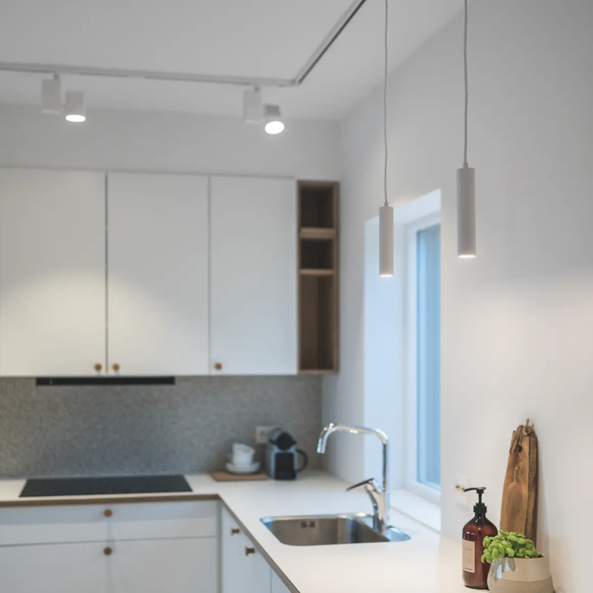Minimalistisk, slank pendel for bruk i Zip-skinnesystem. Perfekt over kjøkkenbenk, spisebord eller i vinduet. Produsert i pulverlakkert, trykkstøpt aluminium og finnes i sort eller hvit finish. Den tilbaketrukne lyskilden gir minimal blending, og kan dimmes med ekstern dimmer.
