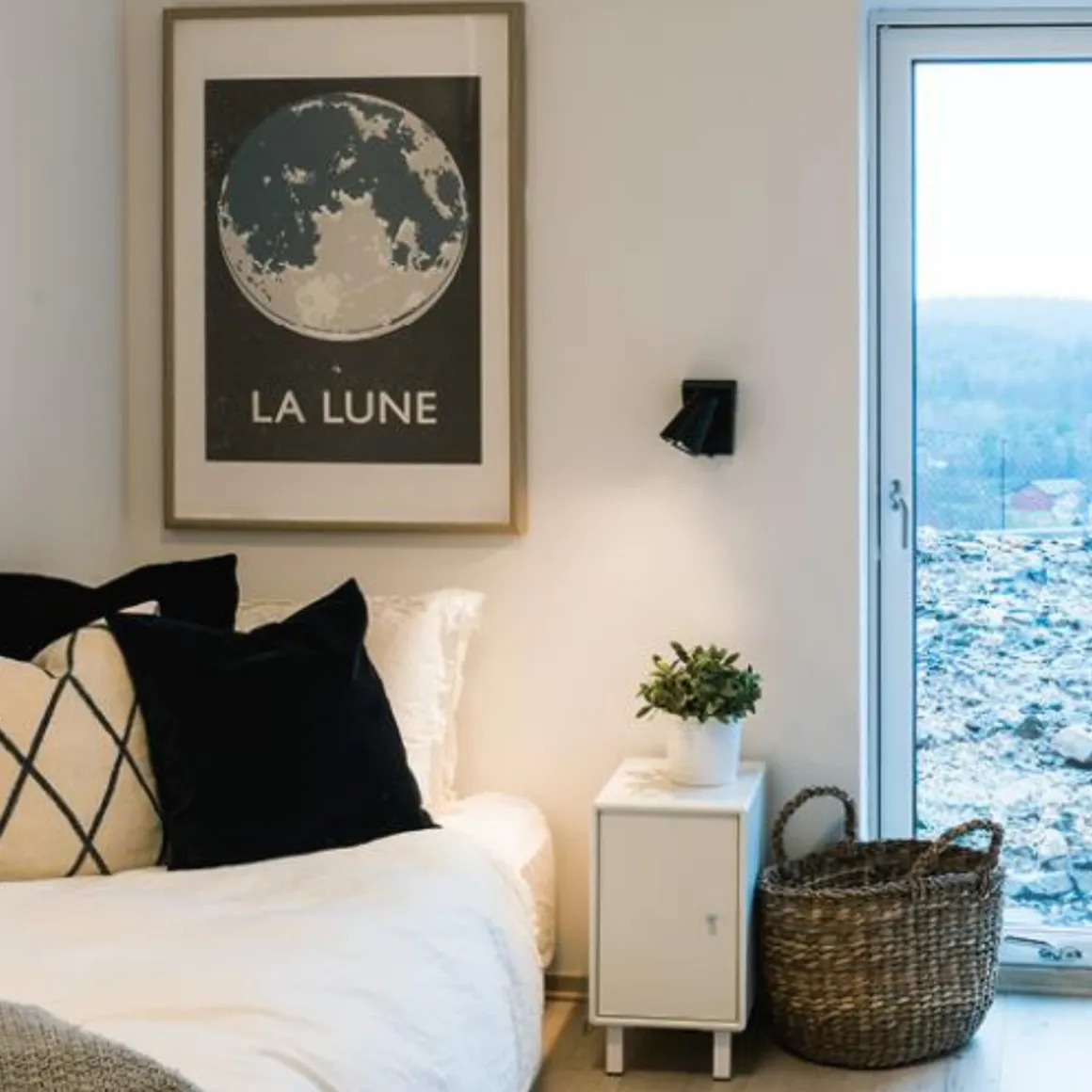 Vegg-/sengelampe med utskiftbar GU10-LED DimToWarm-funksjonalitet samt integrert dimmer og på/av-knapp. Spothodene kan vippes og roteres. Den justerbare skjermen kan endre spredningen av lyset. Perfekt fargegjengivelse ved hjelp av ekstra høy RA-verdi. Den justerbare skjermen kan endre spredningen av lyset.