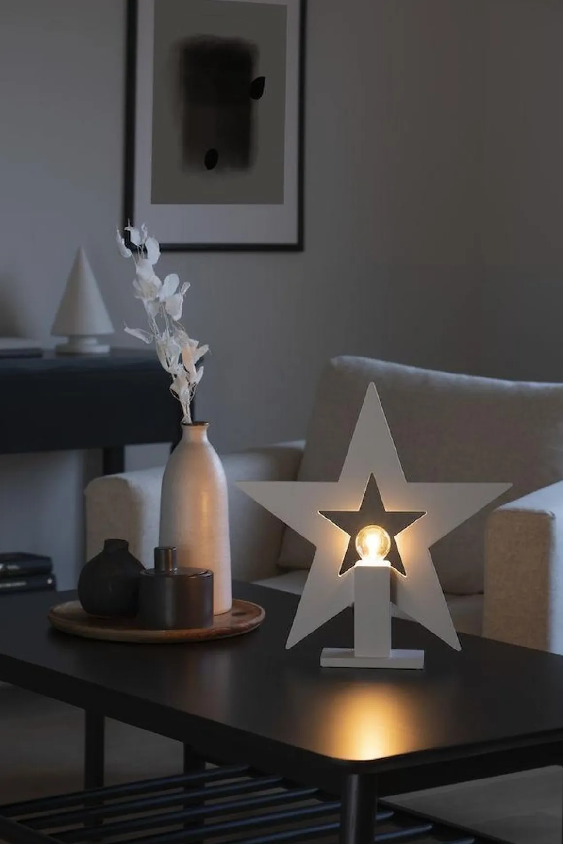 Nydelig julestjerne i hvitfarge.