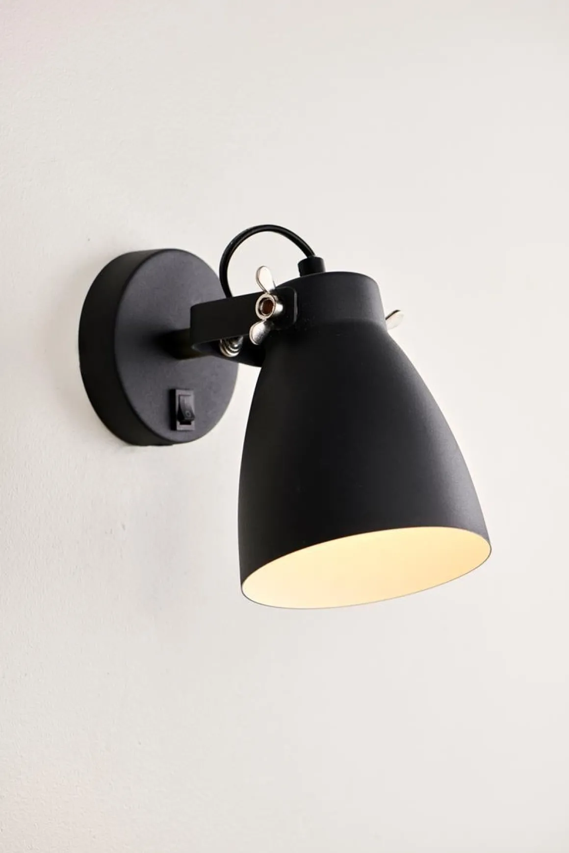 Stilren vegglampe med bryter montert på selve veggplaten.