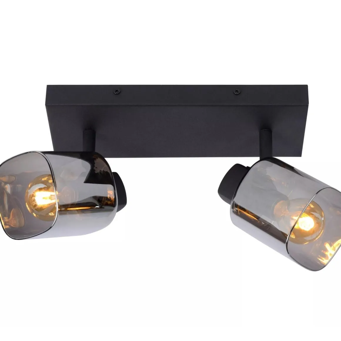 Stilfull taklampe med 2 justerbar takspott i lekkert røykfarget glass.