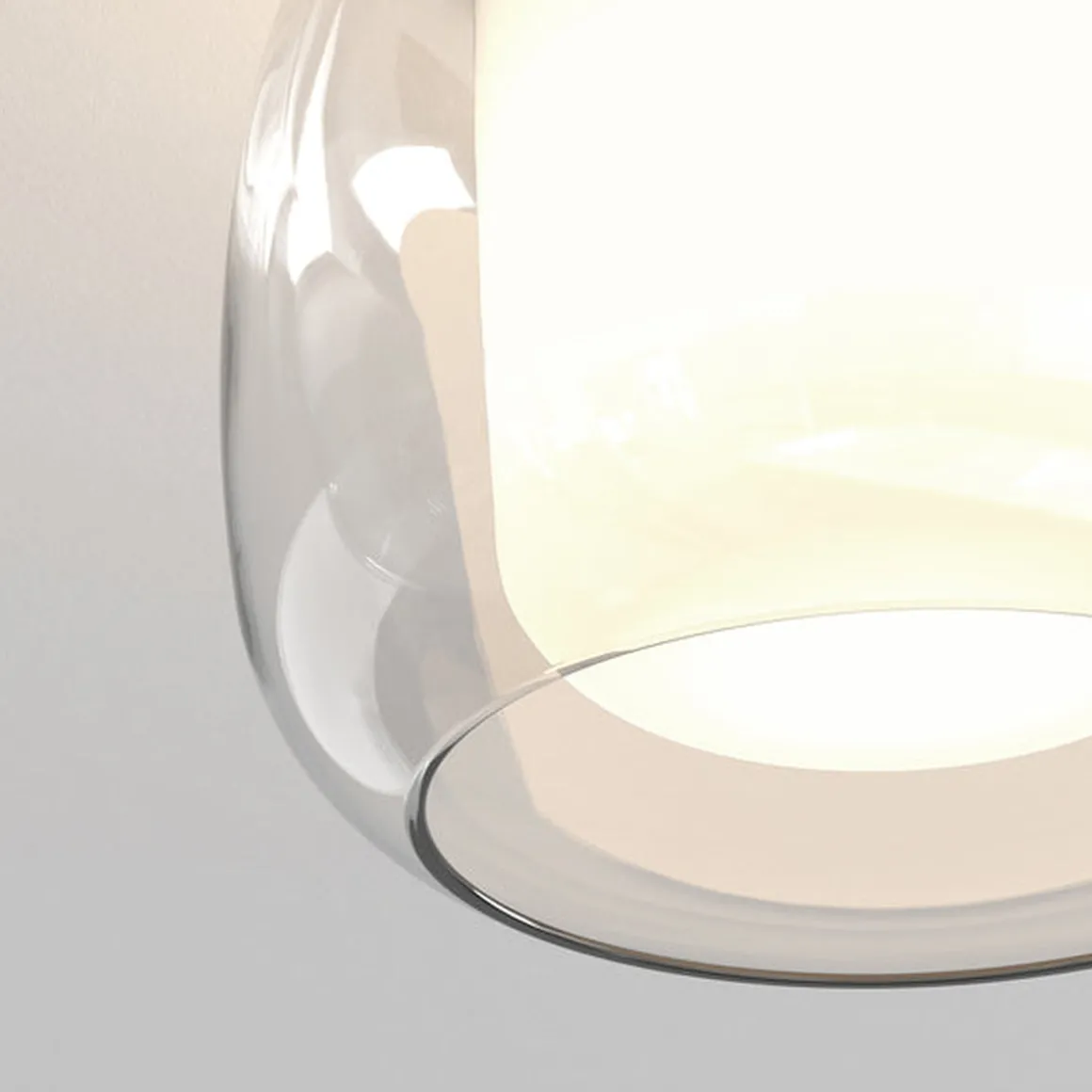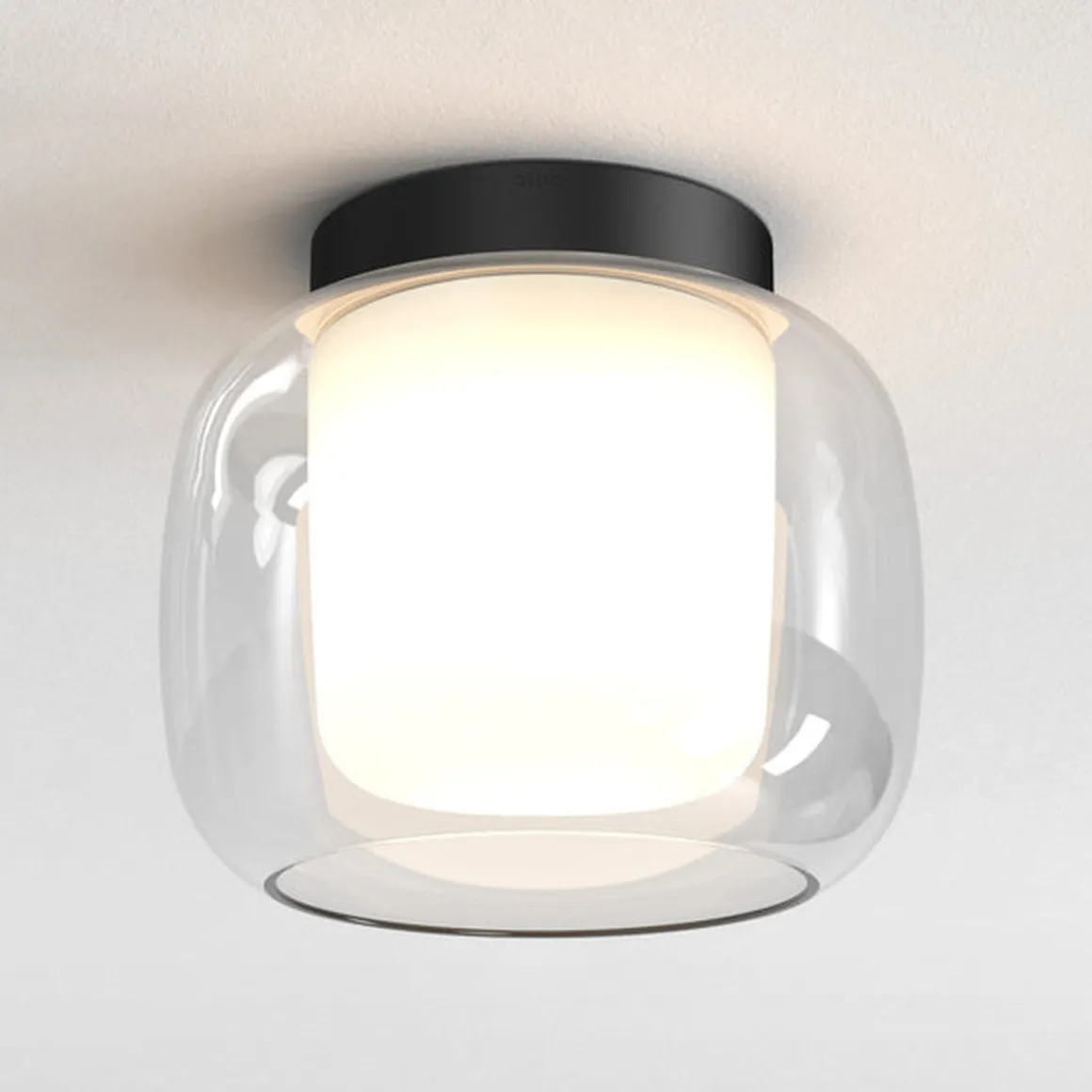 Med sine organiske kurver inspirert av elliptiske former, myker taklampen Aquina et baderomsutseende og gir atmosfærisk arbeidsbelysning når den brukes som hovedlyskilde. Den utskiftbare doble glassskjermen er sikret med design og har ingen synlige fester for en sømløs finish.