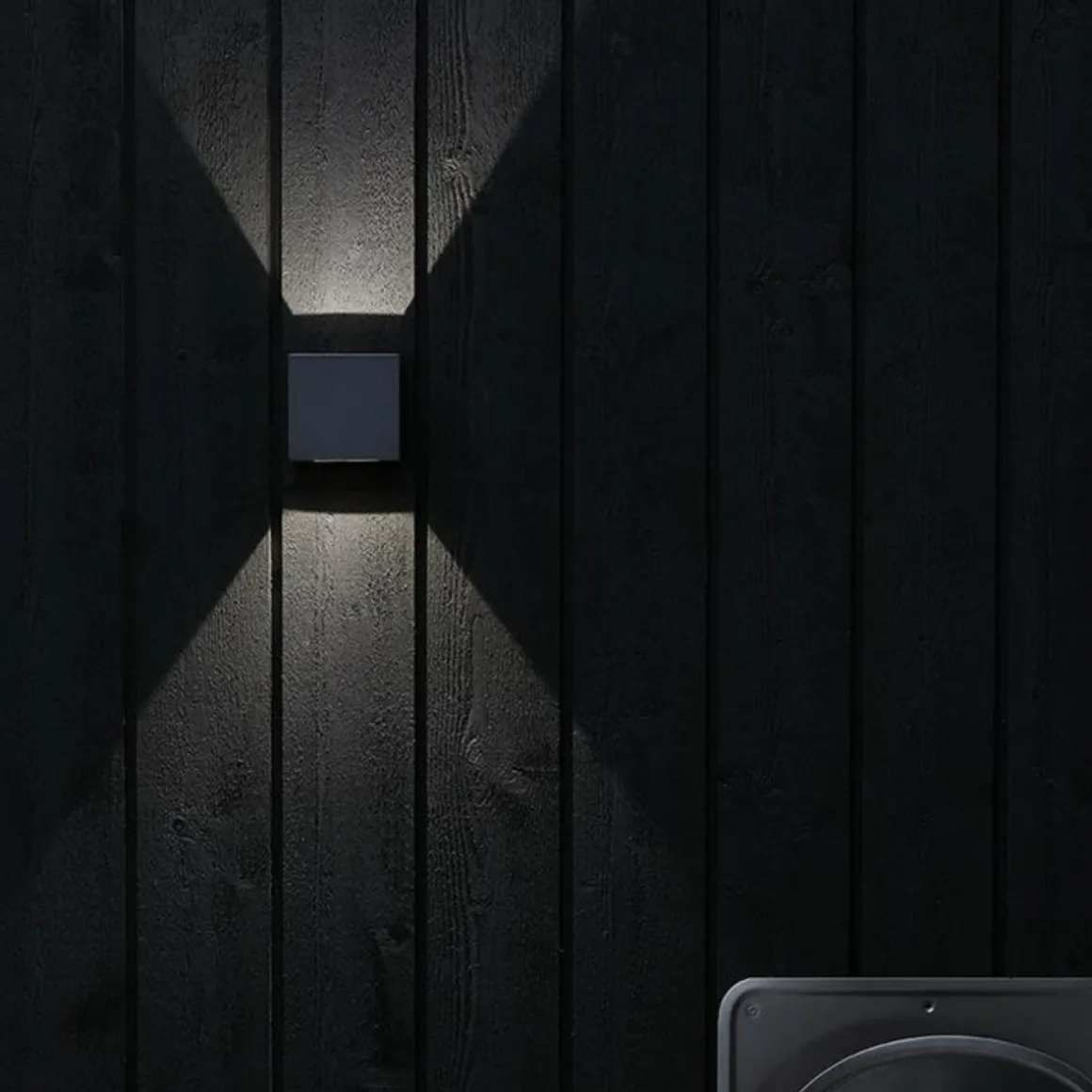 Stilren vegglampe som er i pulverlakkert aluminium.