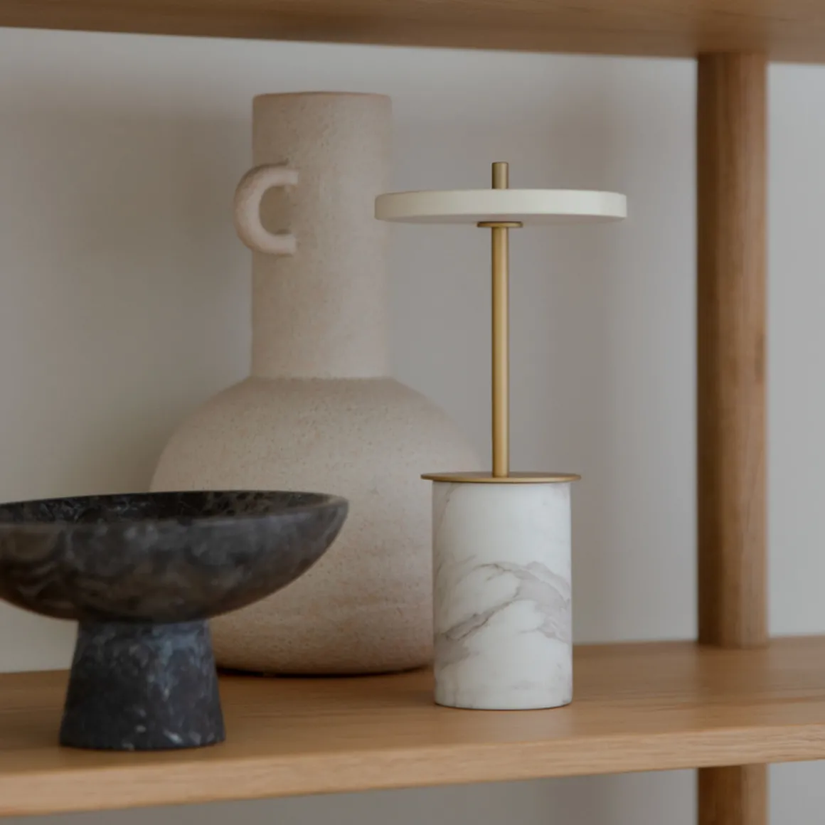 Marmordetaljene gir et skulpturelt preg til designet, og får Asteria Move Mini til å pynte elegant på enhver hylle eller skaptopp i hjemmet.