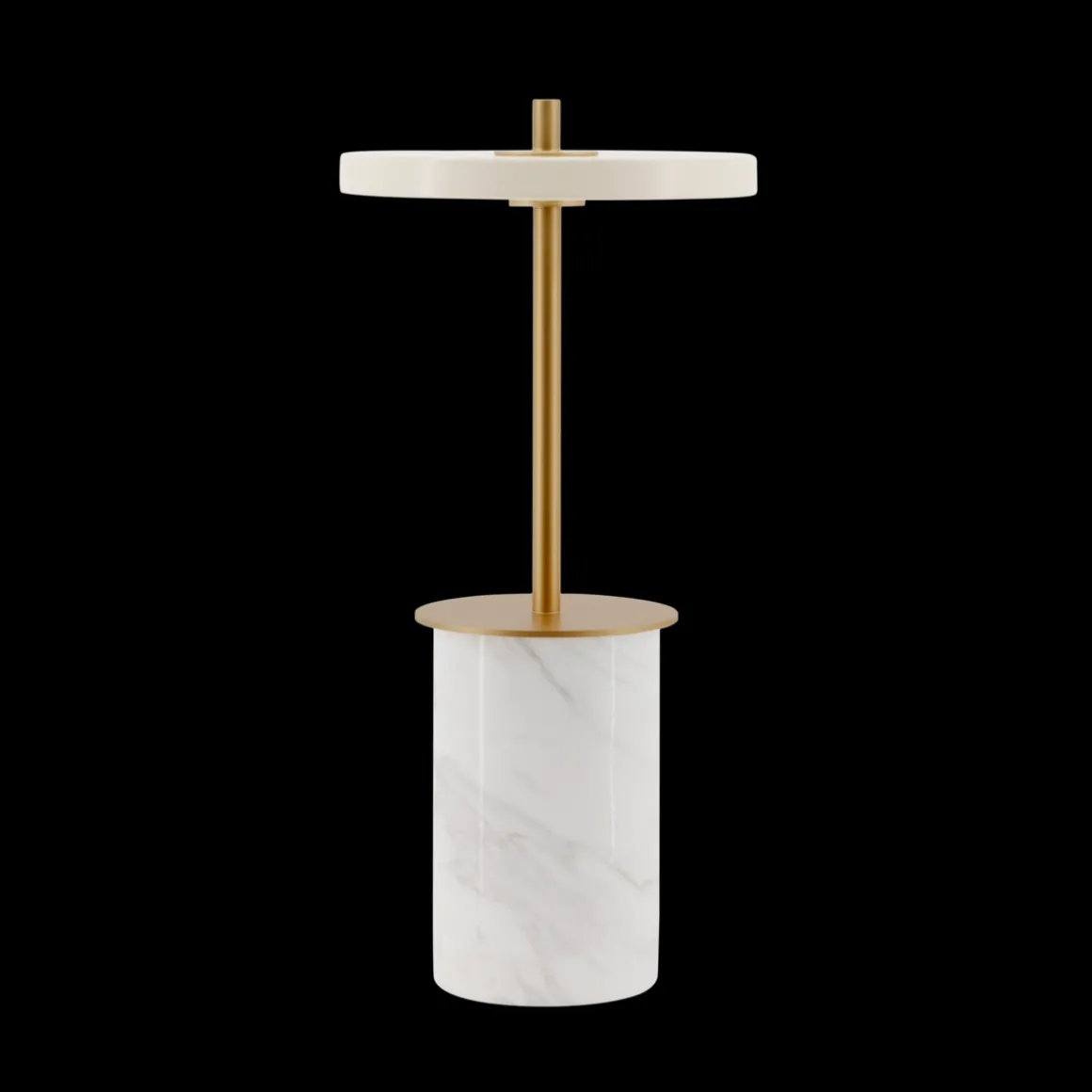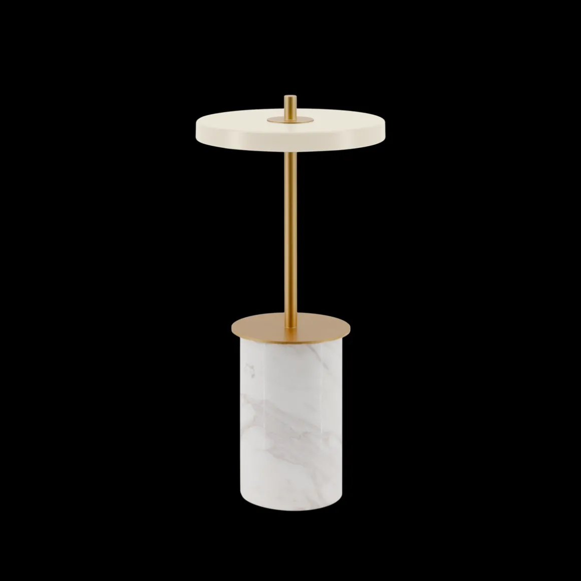 Det slanke og stilige uttrykket til Asteria Move Mini er akkompagnert av en utskiftbar solid marmorbase, som gir et klassisk preg til designet. Asteria Move Mini har fire ulike lystrinn som lar deg justere lyset til ønsket innstilling med en forsiktig berøring på bunnen av lampen.