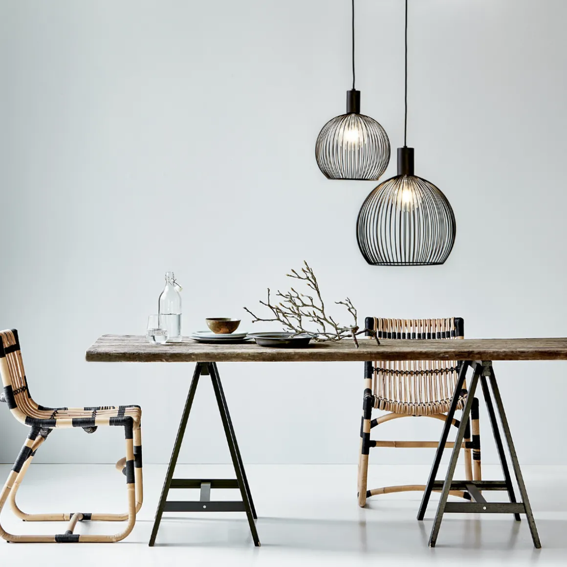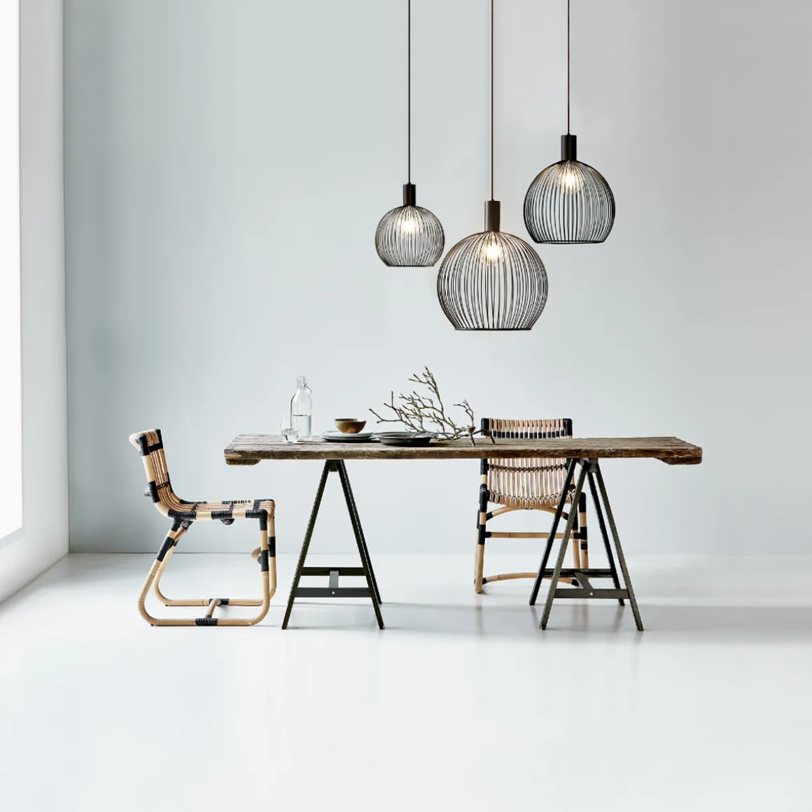 Aver er en pendel som bryter med tradisjonen. Med en synlig lyspære bak buede metalltråder gir et vakkert lys og en interessant refleksjon. Konstruksjonen er enkel, estetiske og støttes av den rå kraften av metallet. Dette summerer til en sterk visuell design erfaring og et anheng som bringer en unik liv til rommet.