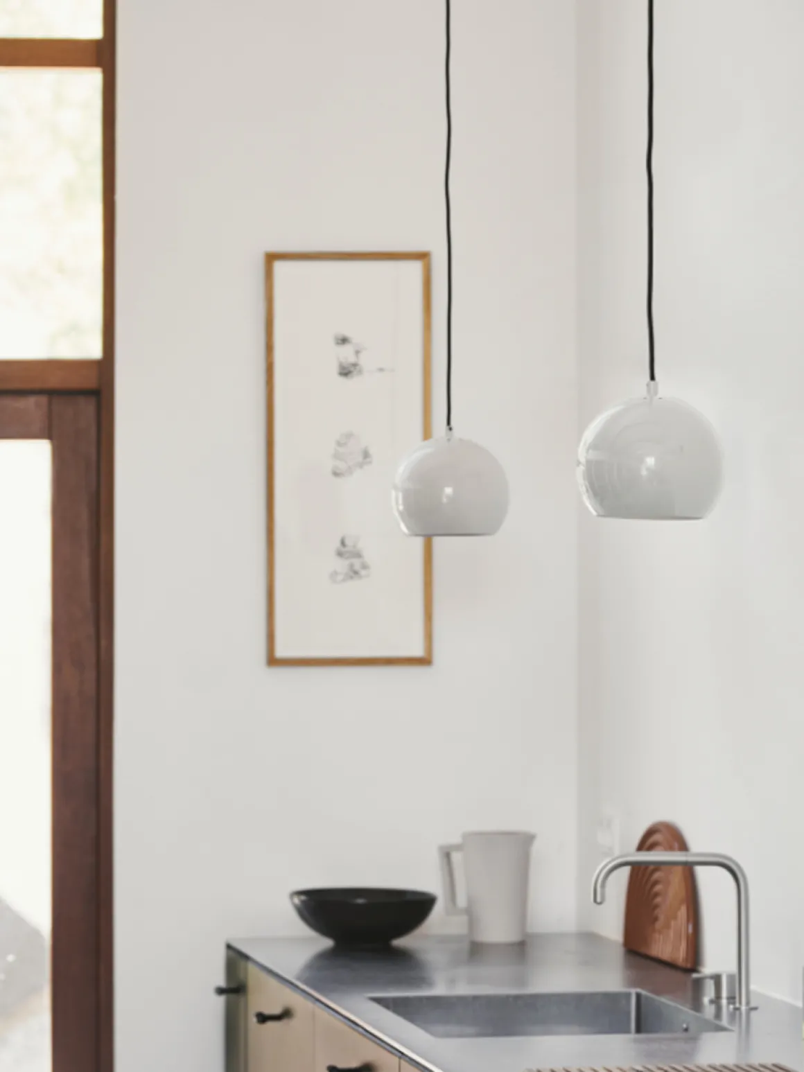 ø18-utgaven av Ball-anhenget har en flott størrelse for å kunne plasseres mer enn én i samme setting. Miks eller match de mange forskjellige fargene for å skape et lekent uttrykk i interiørdekorasjonen din.