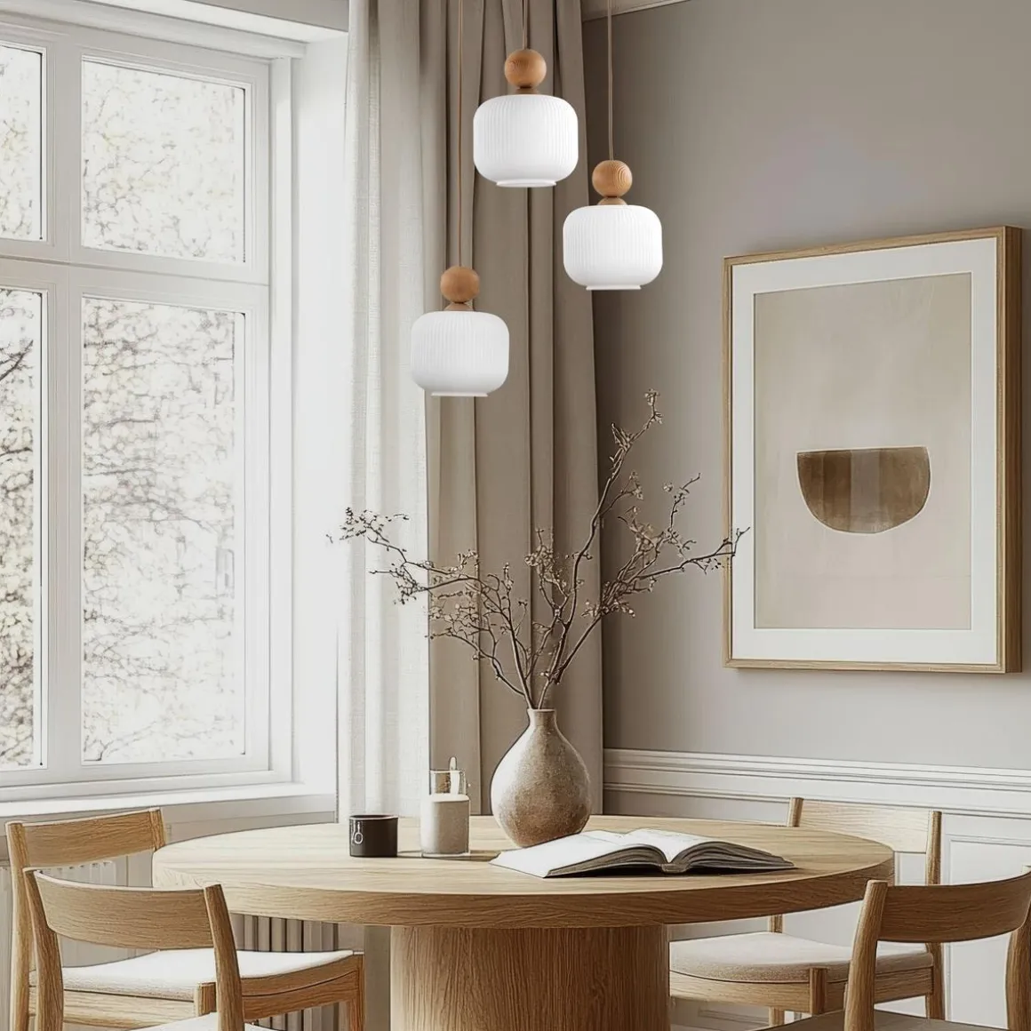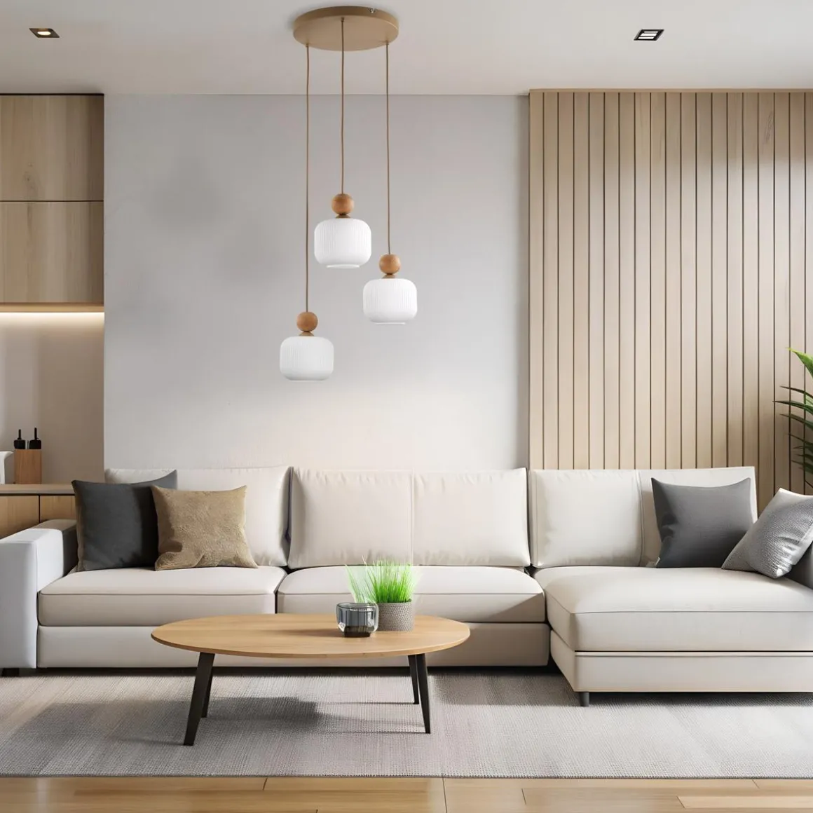 BALLO- lampefamilien er en elegant belysningskolleksjon som kombinerer moderne stil med naturlige aksenter. Et særegent trekk ved serien er de riflede, melkehvite glassskjermene, som subtilt diffunderer lyset og skaper en koselig atmosfære i ethvert interiør. Dekorative trekuler plassert over skjermene gir også et varmt og organisk preg. Det hele kompletteres av en Beige-farget baldakin – en lys, sandbeige som perfekt utfyller lampenes delikate form. BALLO- kolleksjonen er tilgjengelig i flere versjoner, noe som gjør den enkel å tilpasse til ulike rom og designbehov.