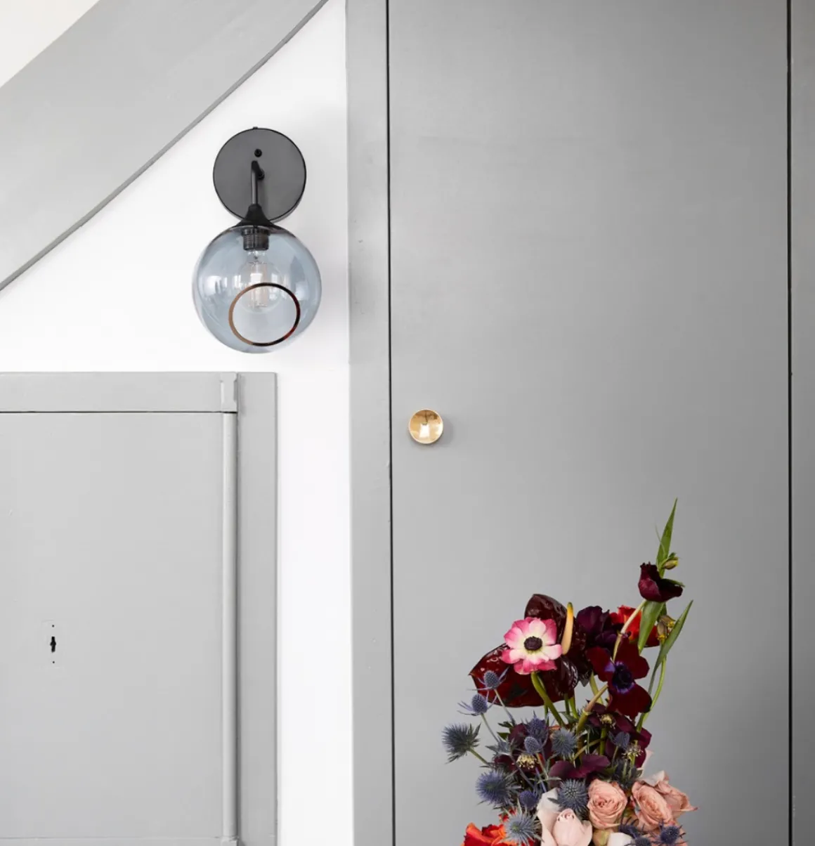 Ballroom Vegglampe er ideell som vegglampe ved sengen, i gangen eller hvor som helst en vakker vegglampe er nødvendig. Vegglampen er i samme serie som ballroom taklamper og ballroom Molecular. Vegglampen er hådblåst og håndmalt, derfor er lampen helt unik og kan variere litt i farge og størrelse.