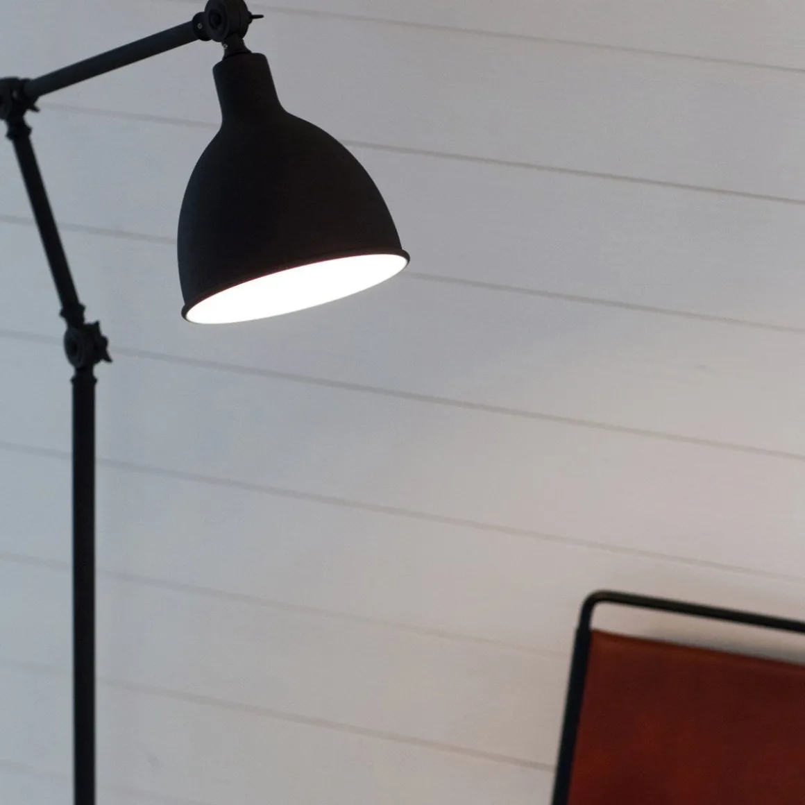 Lampen er tilgjengelig i svart og hvit og har et utmerket leselys.