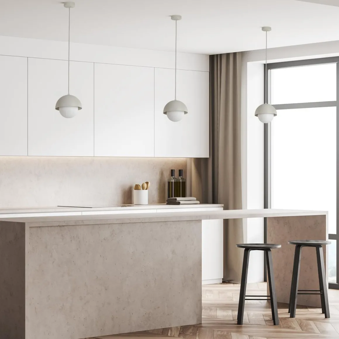 BONO-lamper er designer og moderne belysning som vil passe perfekt inn i ethvert interiør og har en solid konstruksjon og elegant design. Metallskyggen deres kuttet i midten gir dem en industriell karakter, beriket med en delikat melkeaktig nyanse på den nedre delen.