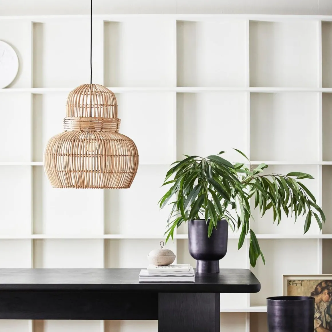 BUDVA lampeskjerm er laget av rotting med en naturlig finish. Lampens organiske form og utseende vil gi raffinement til enhver innredning. Balanserer perfekt mellom det voluminøse og det delikate, denne lampeskjermen gir rommet ditt en atmosfære av eleganse. Det tynne mønsteret skaper en sjarmerende refleksjon av lyset, noe som gjør at lampen ikke bare er praktisk