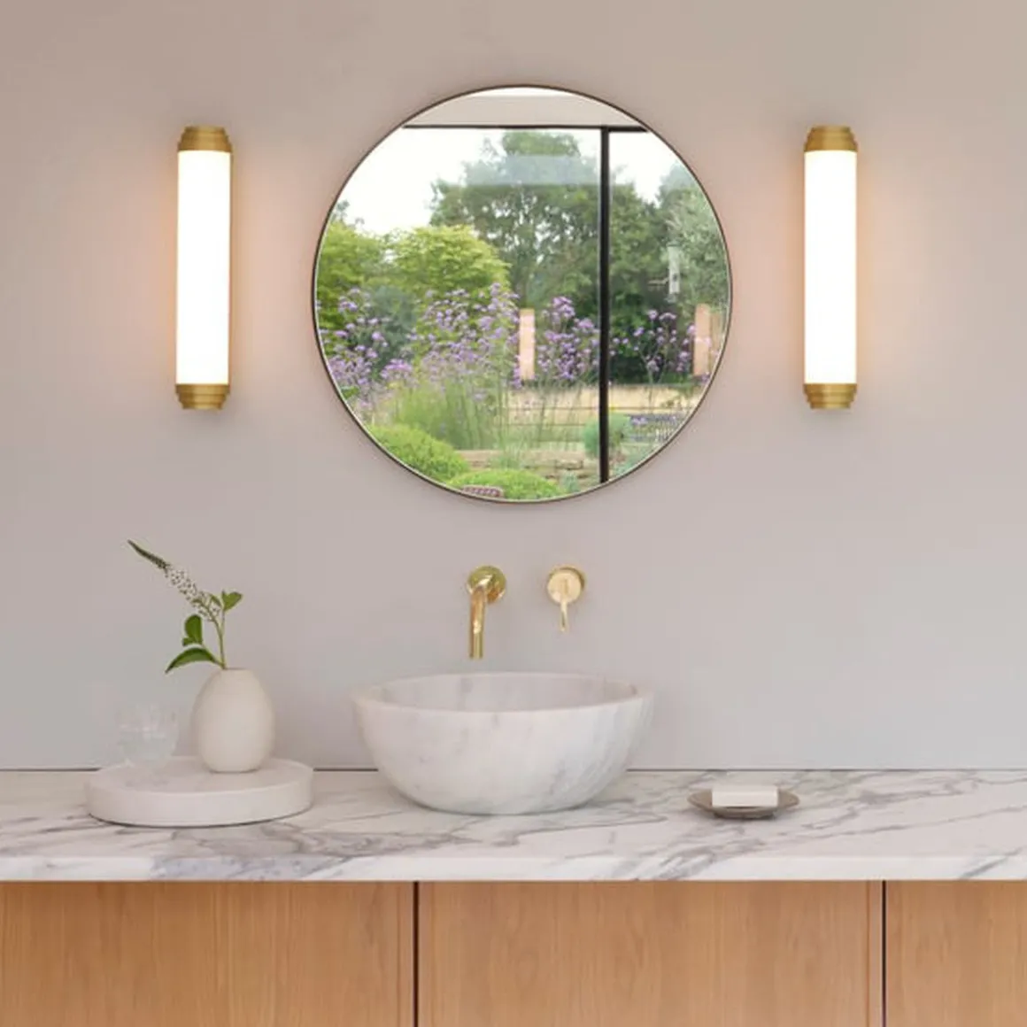 Burlington 400 er en elegant Art Deco-inspirert vegglampe, ideell for plassering over eller ved siden av baderomsspeil eller i korridorer. Burlingtons sylindriske design kan monteres vertikalt eller horisontalt