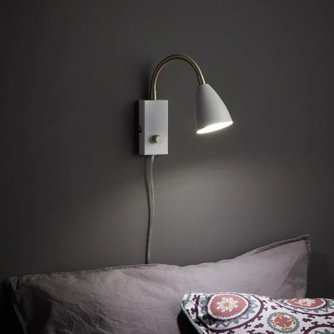 Ciro flex vegglampe fra Markslöjd. Metall med flexarm i messing. Strømbryter/dimmer på veggplate.