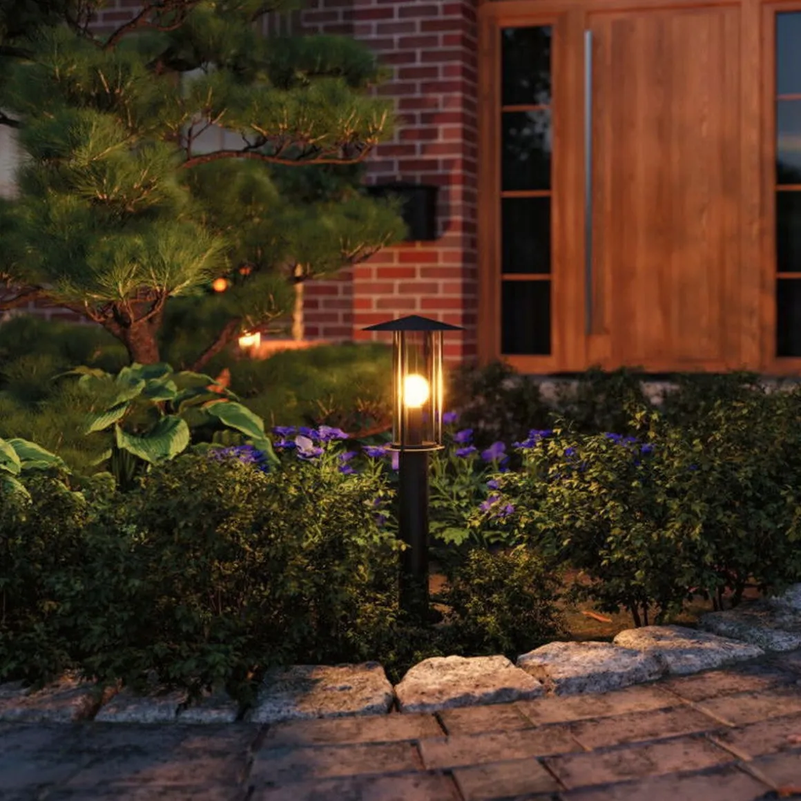 Denne klassiske pullertlampen imponerer med sin klassiske design og gir blendefrie lysaksenter for adkomstveier. Innkjørsler og stier er jevnt opplyst for større sikkerhet. Den mørkegrå rammen og den klare glassskjermen skaper et moderne utseende. Lampen som leveres ved levering kan endres etter behov. Pullertlyset med en lysfarge på 2200K er spesielt insektvennlig, fordi denne verdien ligger utenfor det synlige området for insekter, slik at de ikke tiltrekkes av den ekstra lyskilden. Den beskytter insektene aktivt uten å overse fordelene for mennesker. Det varme gulllyset skaper en hyggelig atmosfære rundt huset.