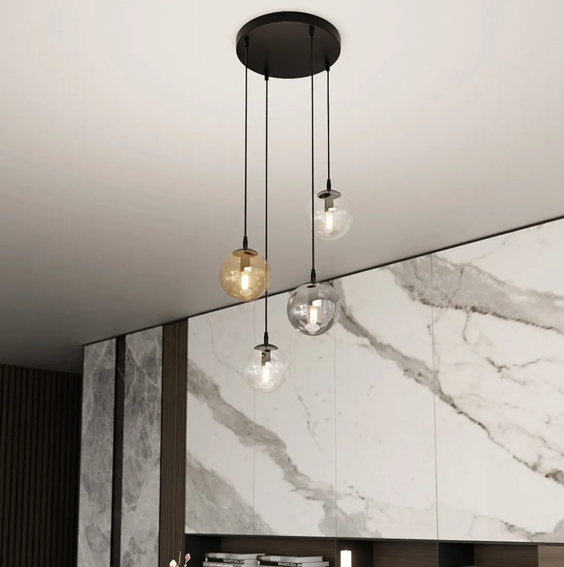 Cosmo er en nydelig pendelserie, som blant annet finnes som 1, 2, 3, 4, 6 eller 9 lys. Modellen er i fargen sort og kan velge mellom klart-, røykfarget- eller amberfarget glass.
