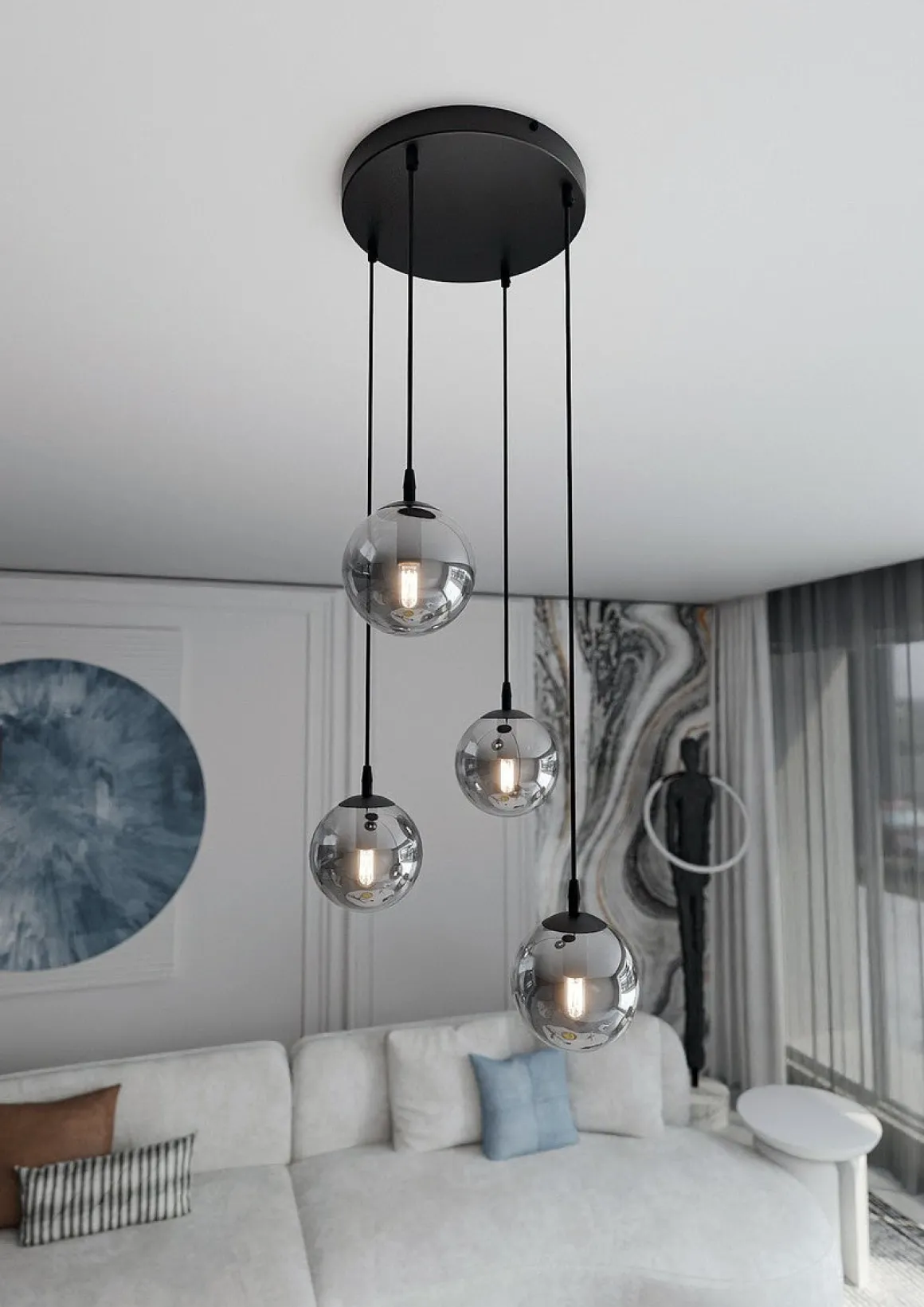 Cosmo er en nydelig pendelserie, som blant annet finnes som 1, 2, 3 eller 4 lys. Modellen er i fargen sort og kan velge mellom klart-, røykfarget- eller amberfarget glass.