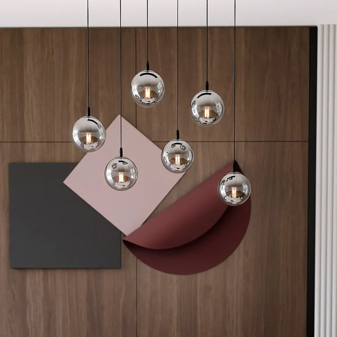 Cosmo er en nydelig pendelserie, som blant annet finnes som 1, 2, 3, 4, 6 eller 9 lys. Modellen er i fargen sort og kan velge mellom klart-, røykfarget- eller amberfarget glass.