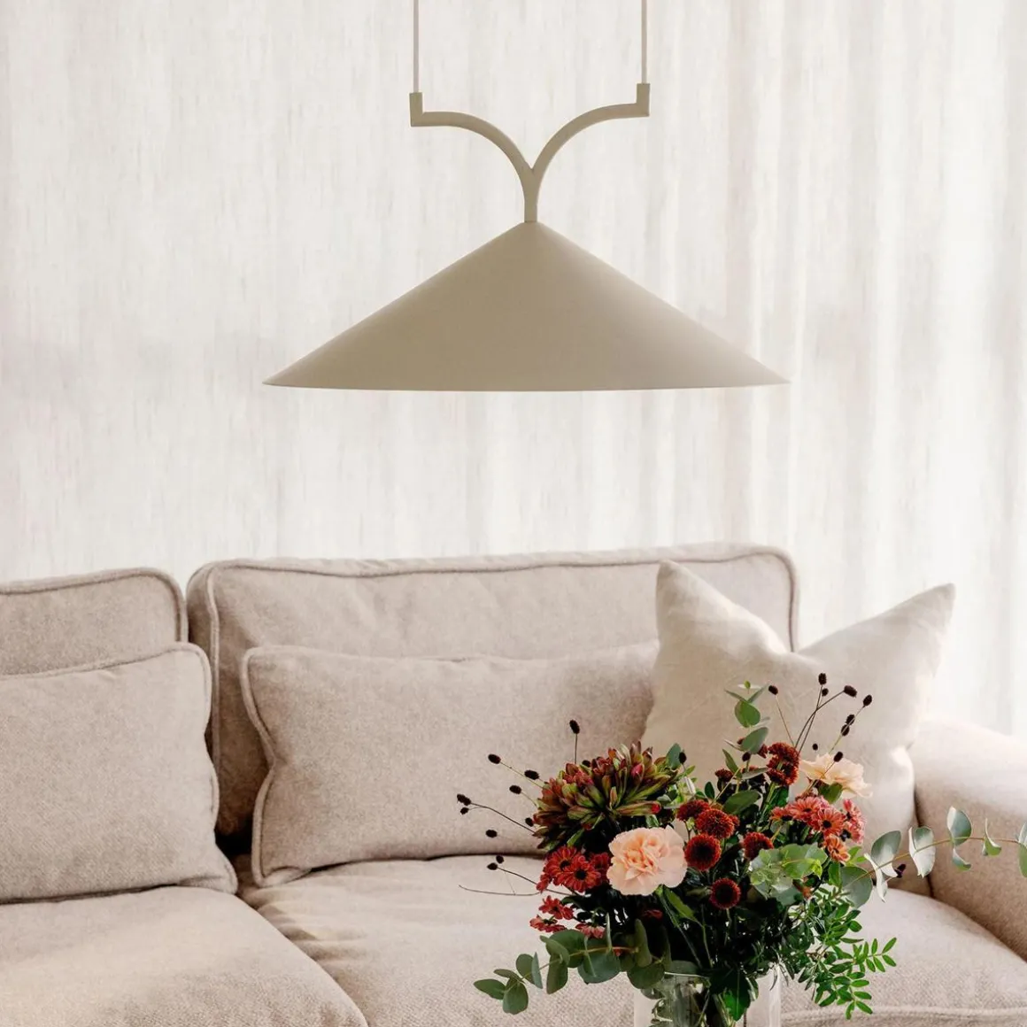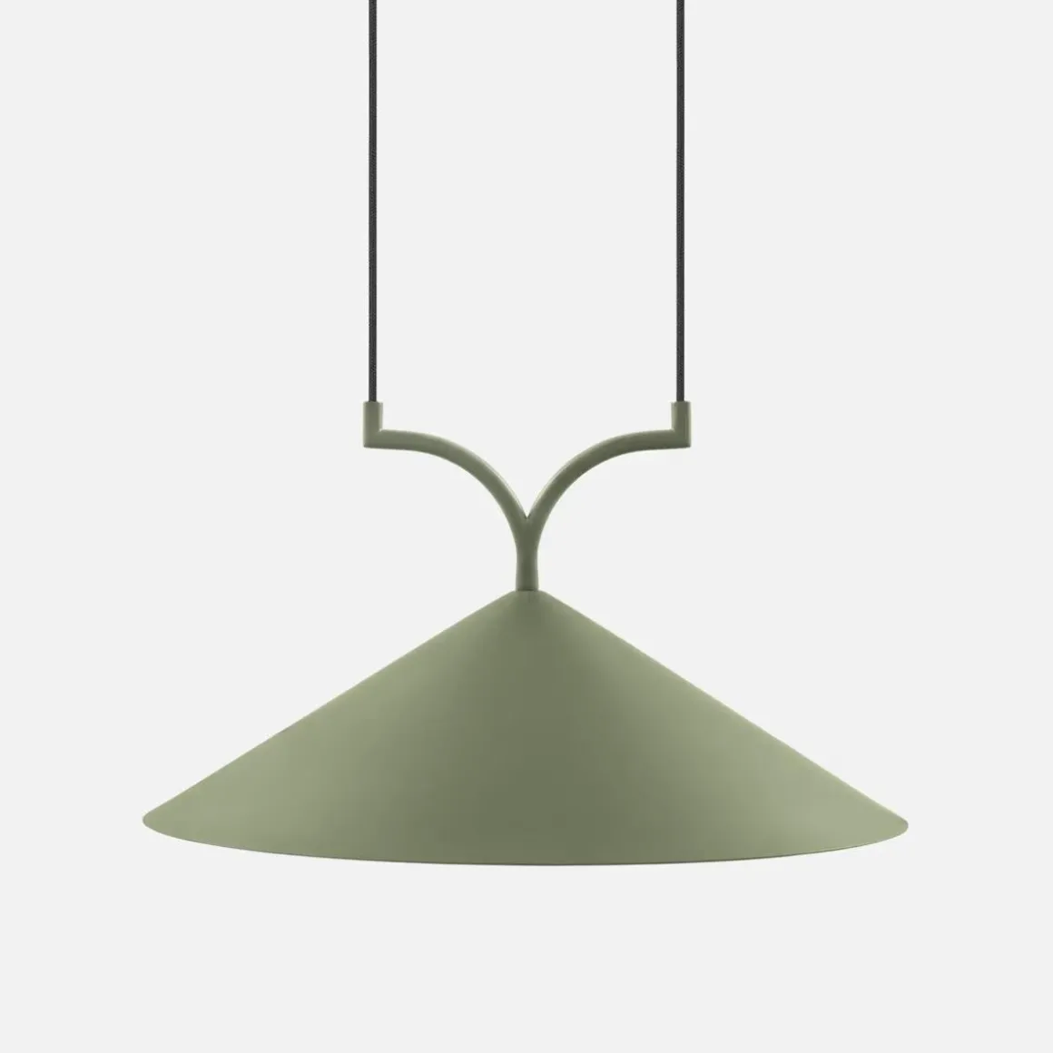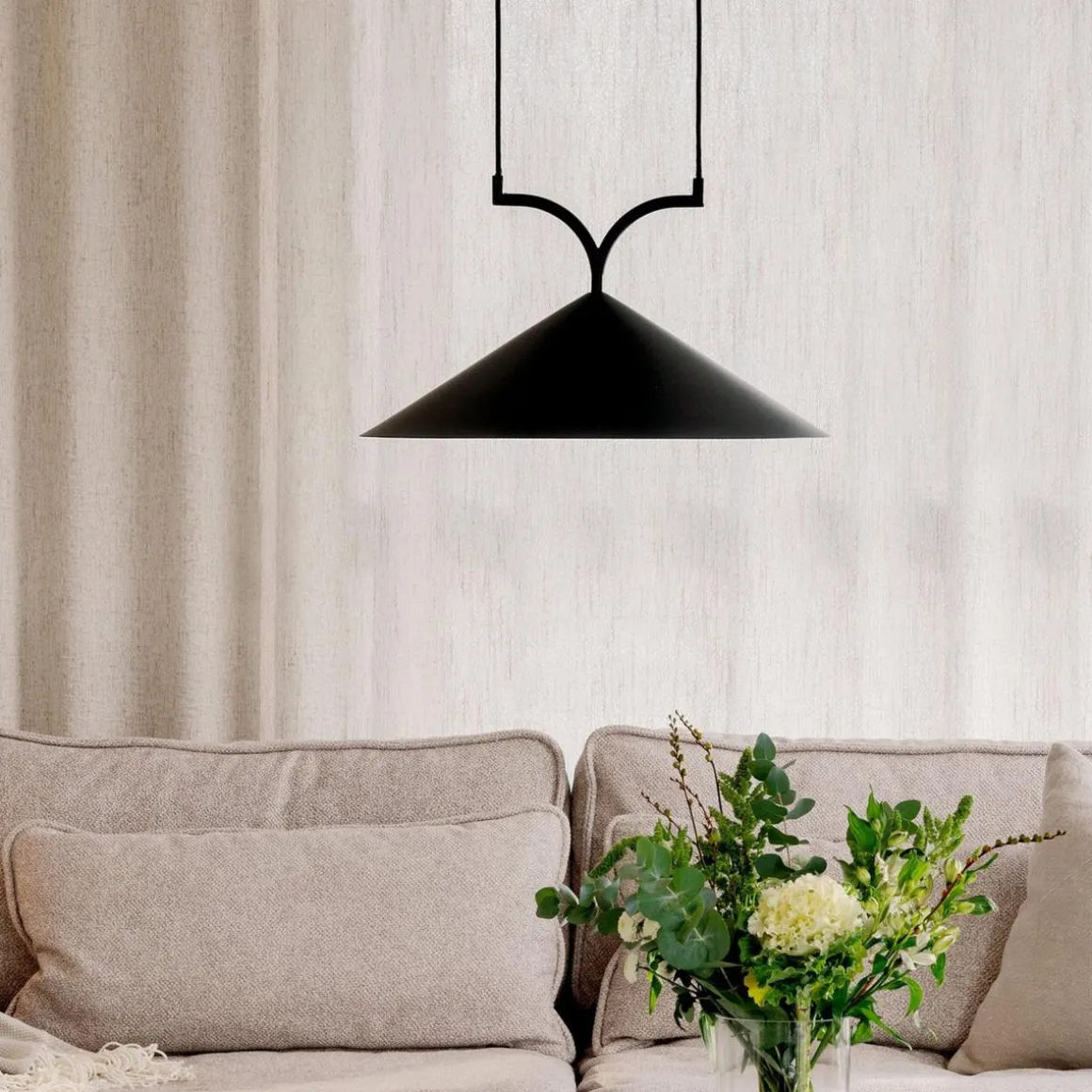 Curve er laget av mattlakkert metall og har to 120 cm lange svarte tekstilledninger med en matchende metalltakopp.