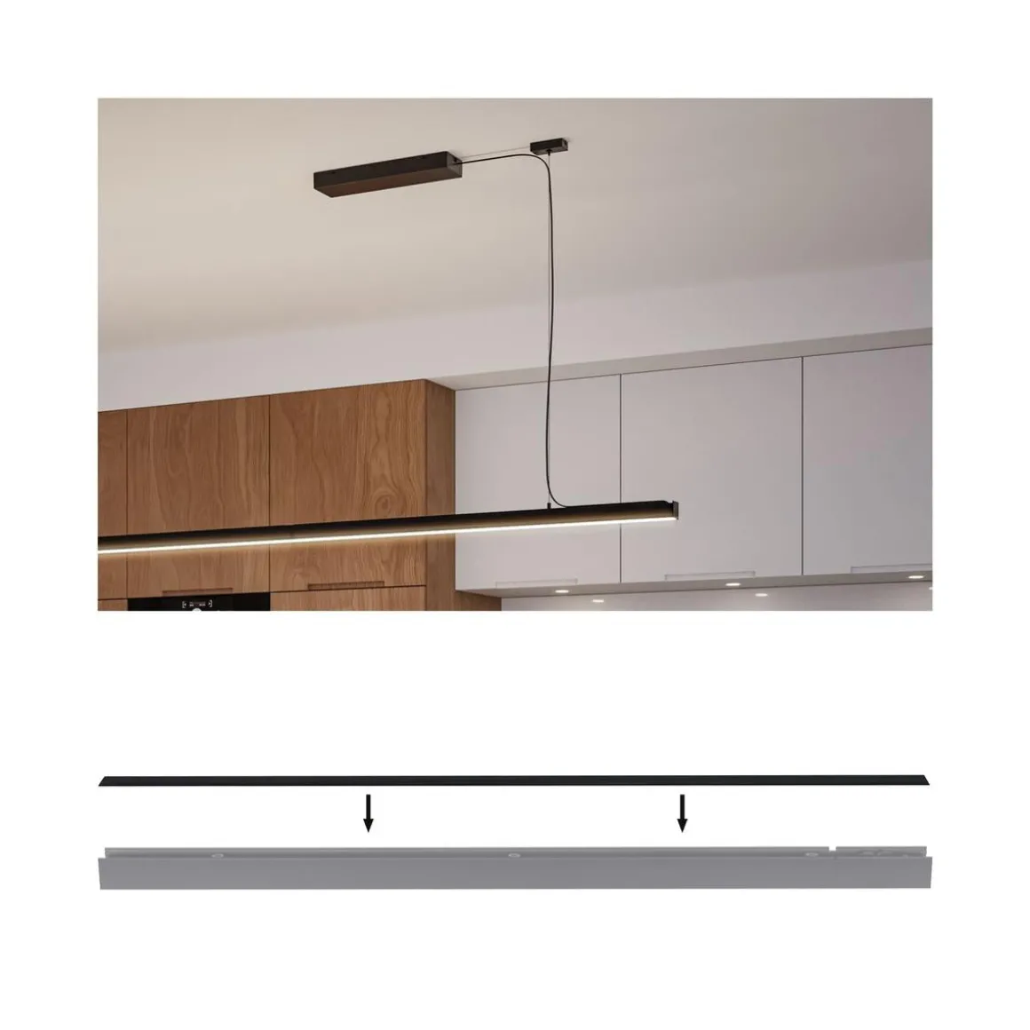Det praktiske 1m dekselet for de rette lette komponentene i Linion-systemet tilbyr en attraktiv løsning for å beskytte komponentene inne i kanalen mot støv under montering av pendler. Den kan settes inn i ryggen og sikrer dermed enkel montering og demontering. Om nødvendig kan dekselet enkelt forkortes. Når det gjelder farge, passer den sømløst inn i Linion lyskanalsystem og skaper et estetisk og rent utseende for pendelinstallasjonen.