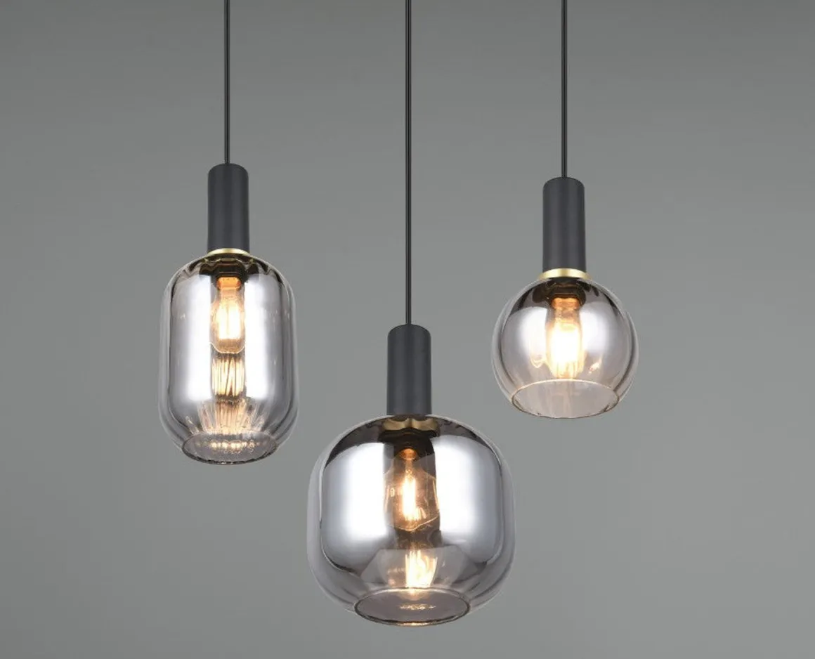 De allsidige glassskjermene til pendellampene i DIVA-serien gir interiøret en spesiell sjarm. De svever over spisebord, salongbord eller kjøkkenbenker og er et imponerende blikkfang som tiltrekker alles oppmerksomhet. Den spesielle formen og utformingen av glasset sprer lyset mykt og refleksjonen skaper et koselig lysspill. Denne varme lysatmosfæren, kombinert med det tidløse designet, vil raskt gjøre DIVA til en favoritt i hjemmet ditt. Den glamorøse kombinasjonen av matt sort og forkrommet glass gir trelampsarmaturen et elegant og diskret utseende.